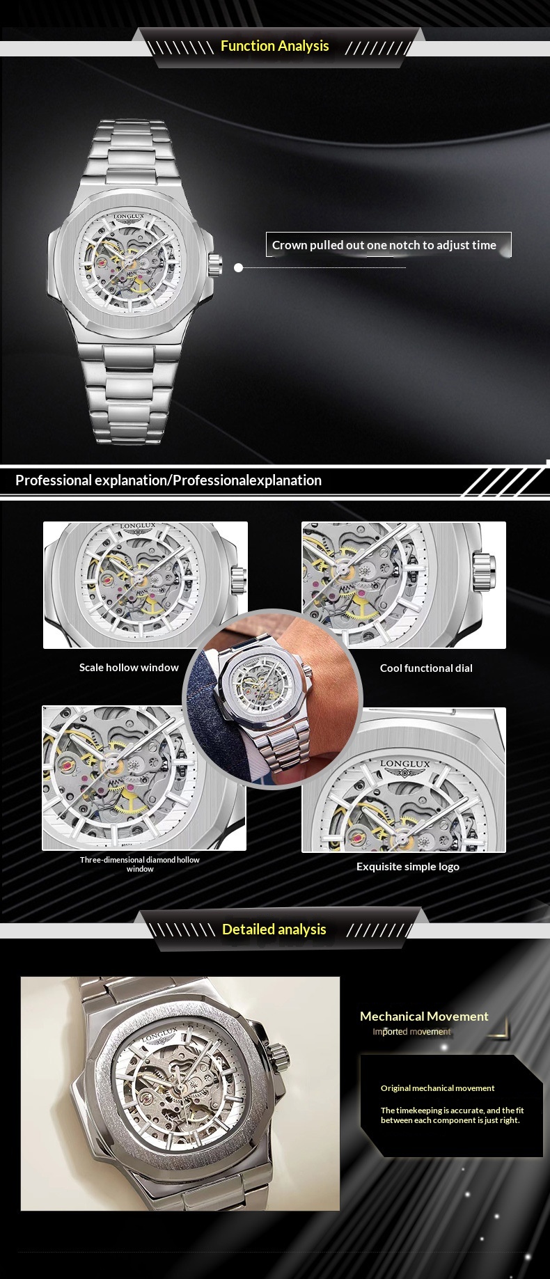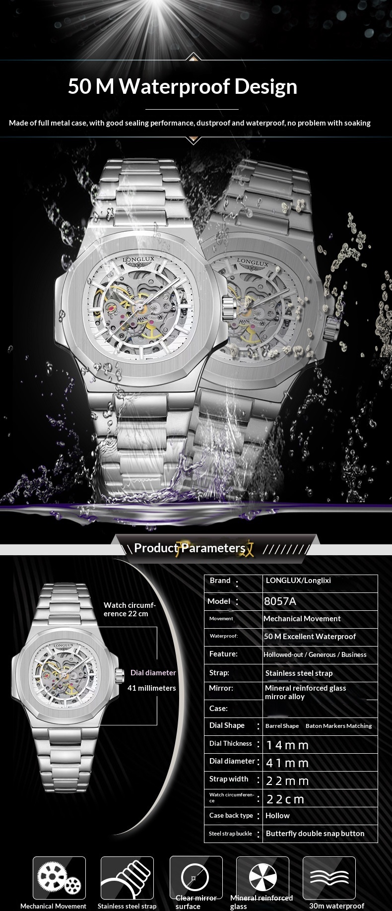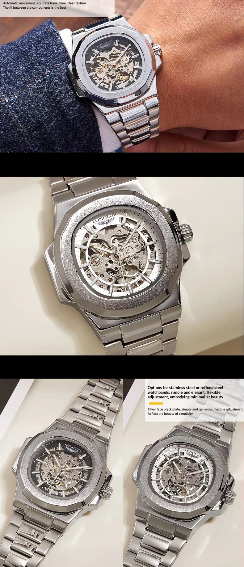Color: Sky blue, black dial with silver case, white dial with silver case, all black, black dial with gold case, white dial with gold case