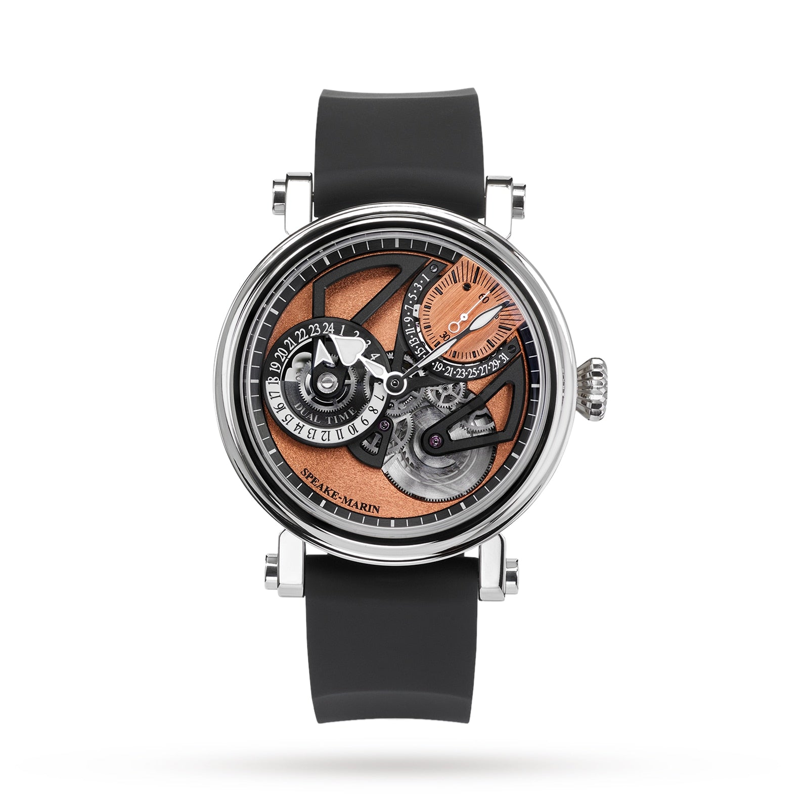 “From London to LV, via NY” Both, Speake-Marin and Watches of Switzerland have British roots. For Speake-Marin, this is expressed in the product codes, the Piccadilly case, the Big Ben Hands of the Dual Time watches. The two WOS editions are inspired by global travelers and the partnership between Speake-Marin and Watches of Switzerland. We currently work together in London, New York, and Las Vegas. As these three cities are not in the same time zone, the logical decision was to go for a dual time. Salmon dial. The salmon dial is inspired by the desert surrounding Las Vegas, with its copper grain finish and superb light reflection. This is similar to the landscape of the Mojave Desert and Sonora deserts and can also be found in Death Valley. Grain Finish – sand The case. The Piccadilly case is the name of the historic case used since the Speake-Marin creation in 2002. The design is inspired by the famous Piccadilly Square in London. The hands. The heart shaped hands of Speake-Marin are directly inspired by the big ben tower clock hands. These products codes have always been part of the British DNA of Speake-Marin and will also be in the future. Limited to 10