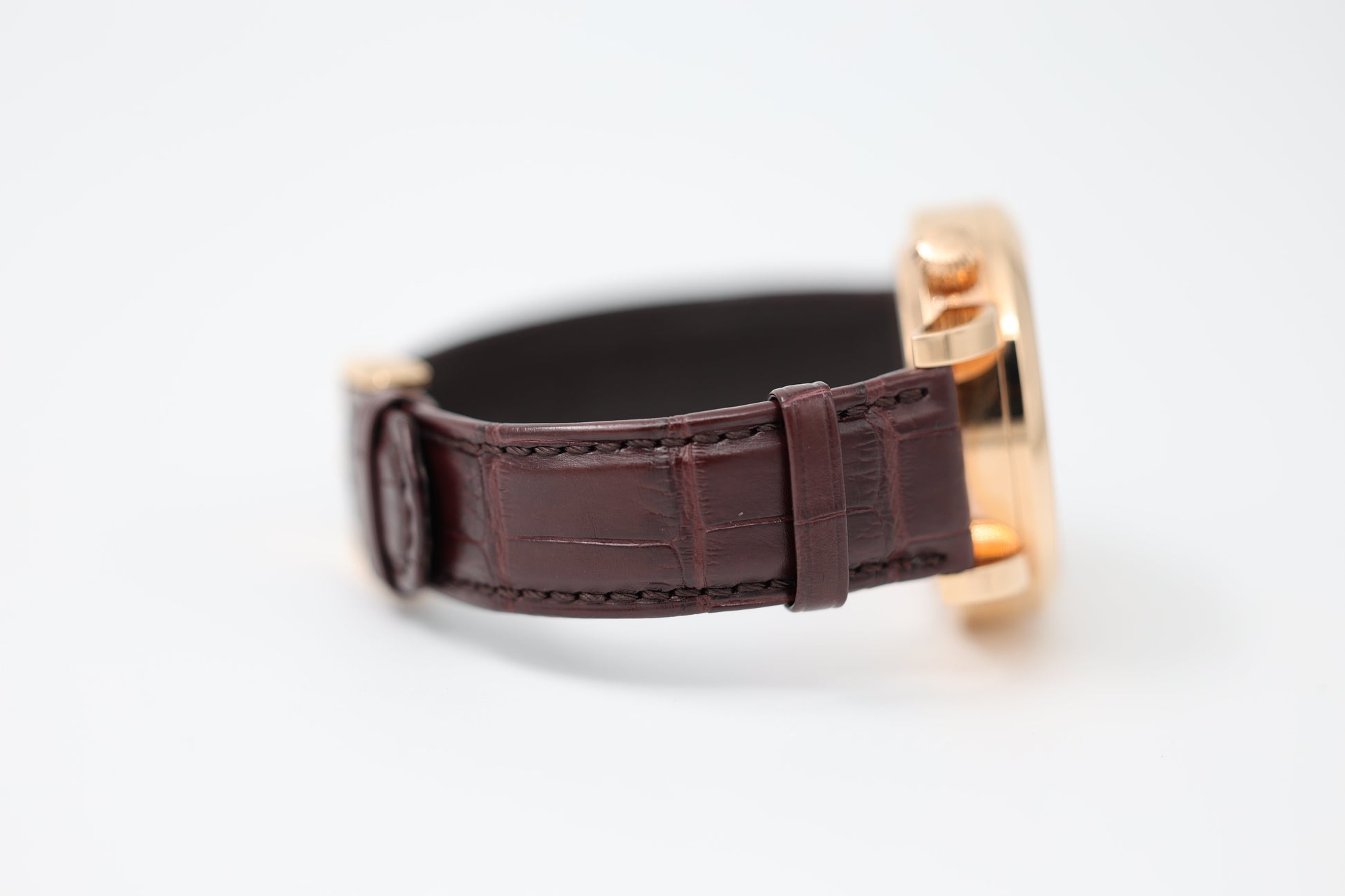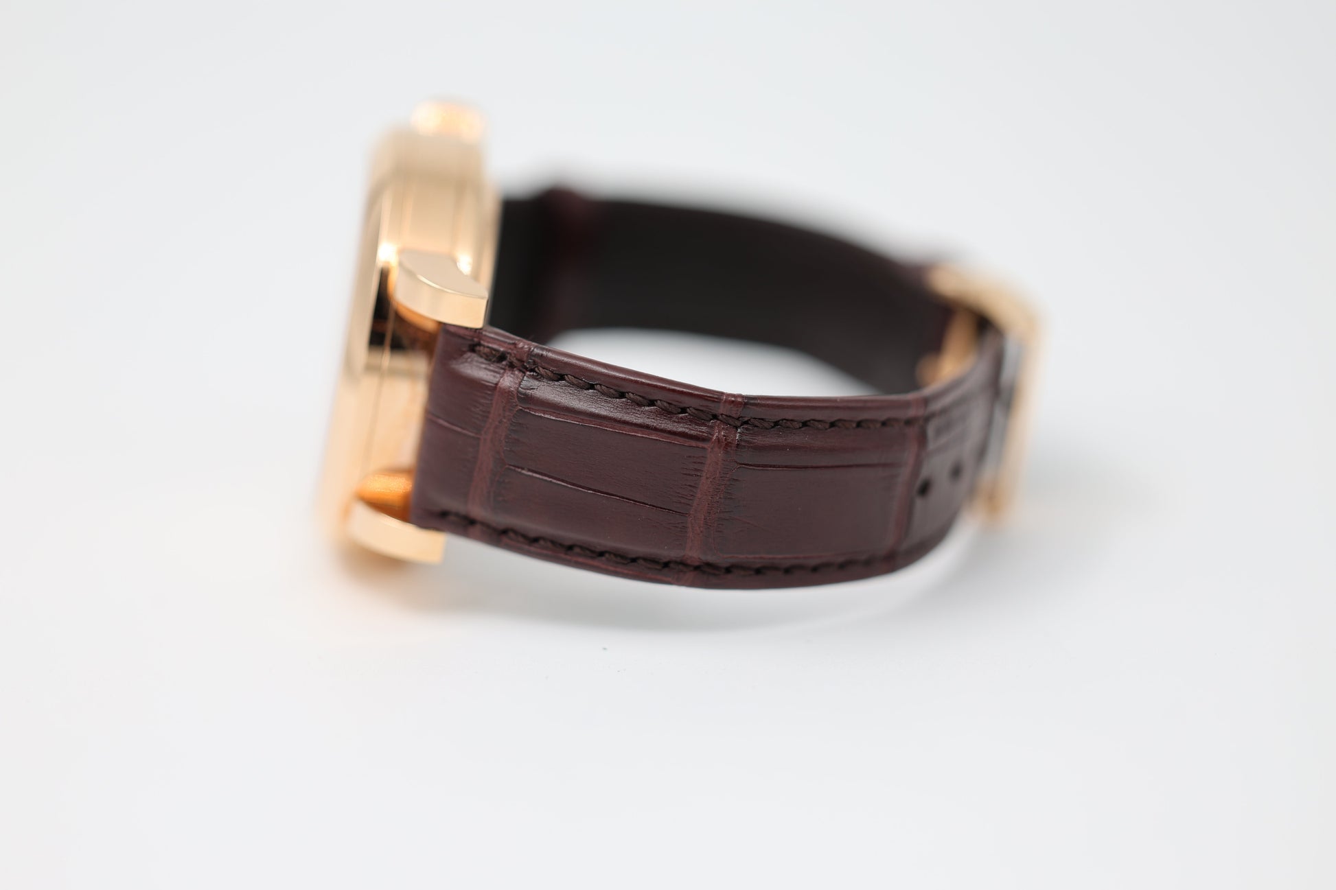 Strap: Hand-stitched brown alligator leather