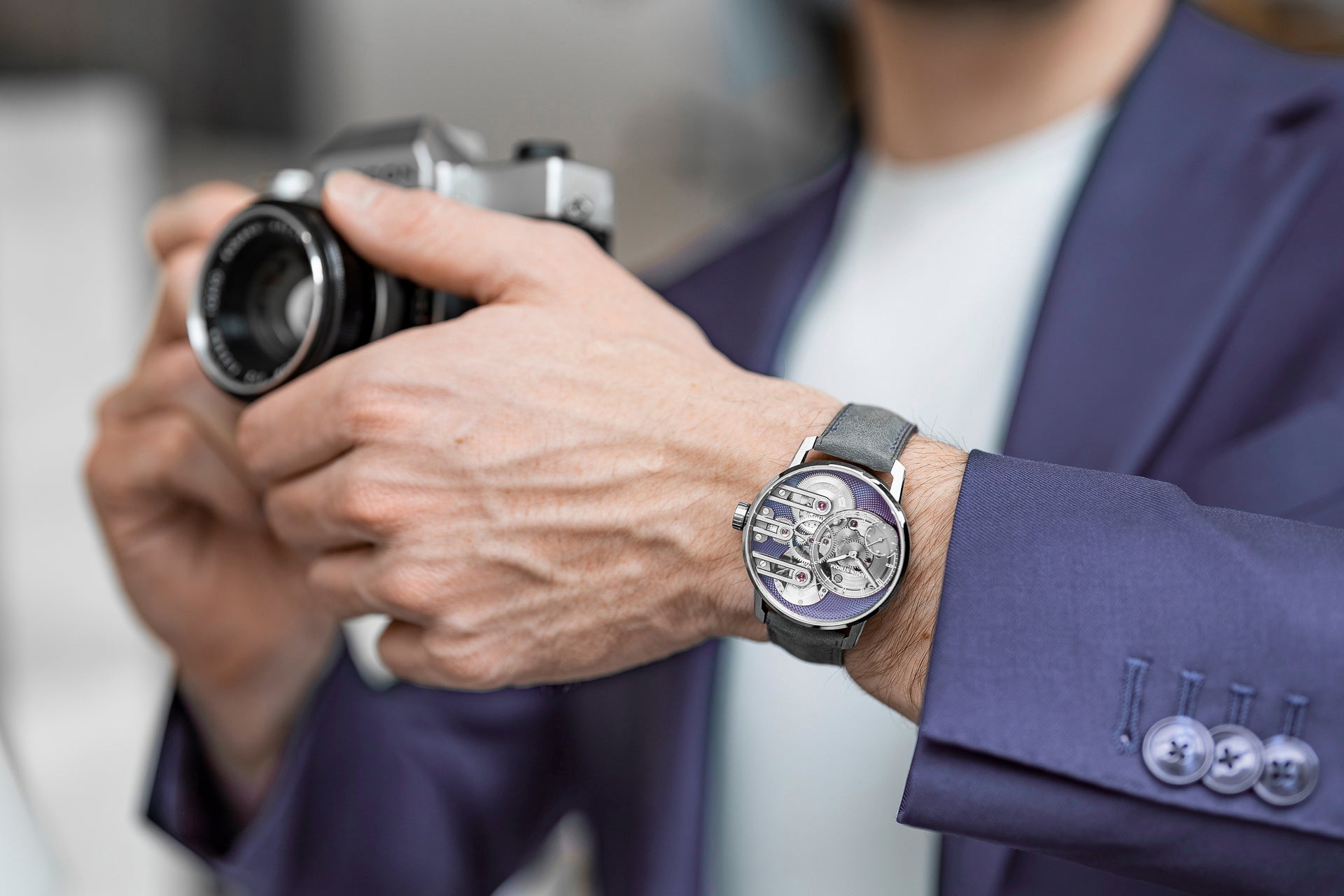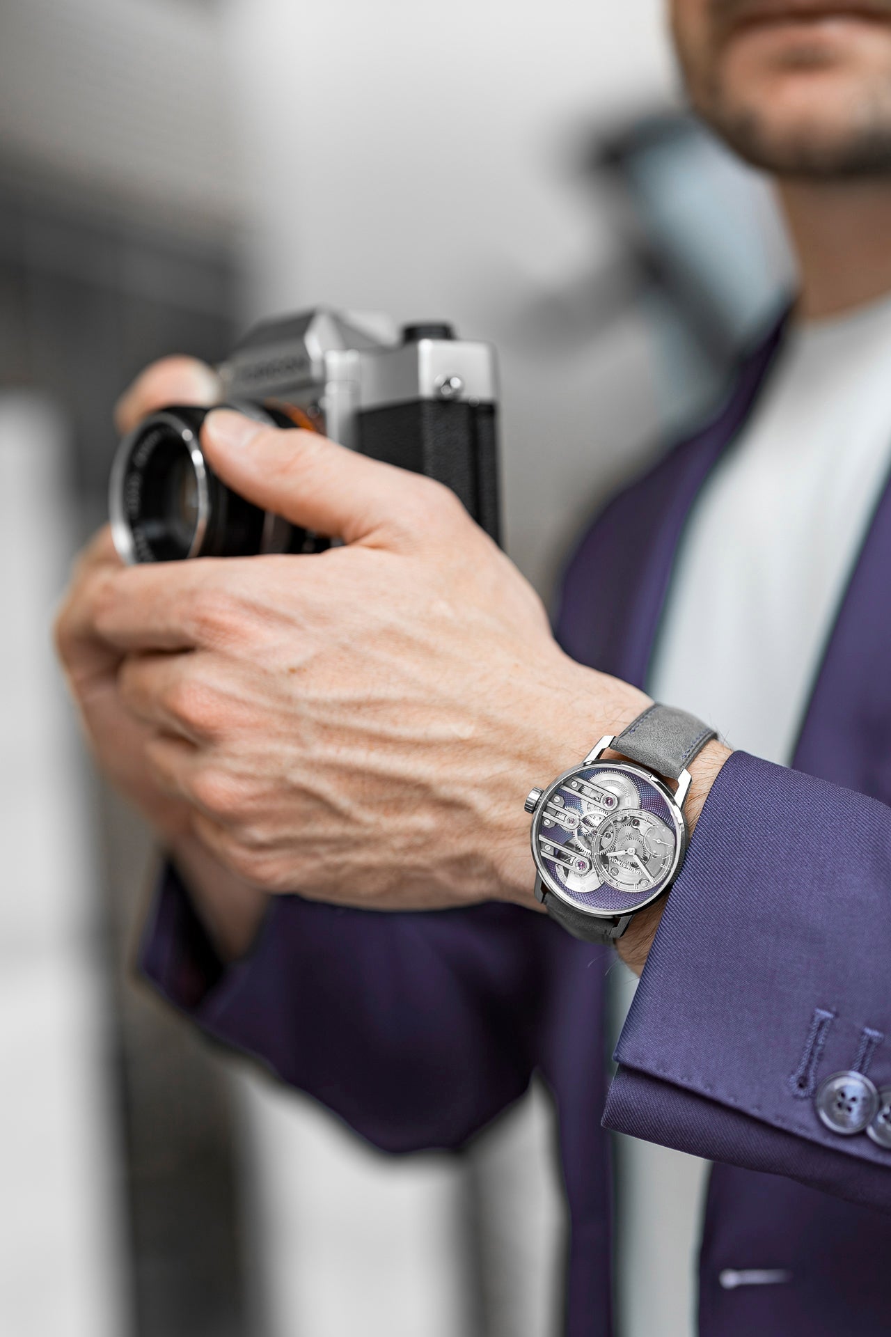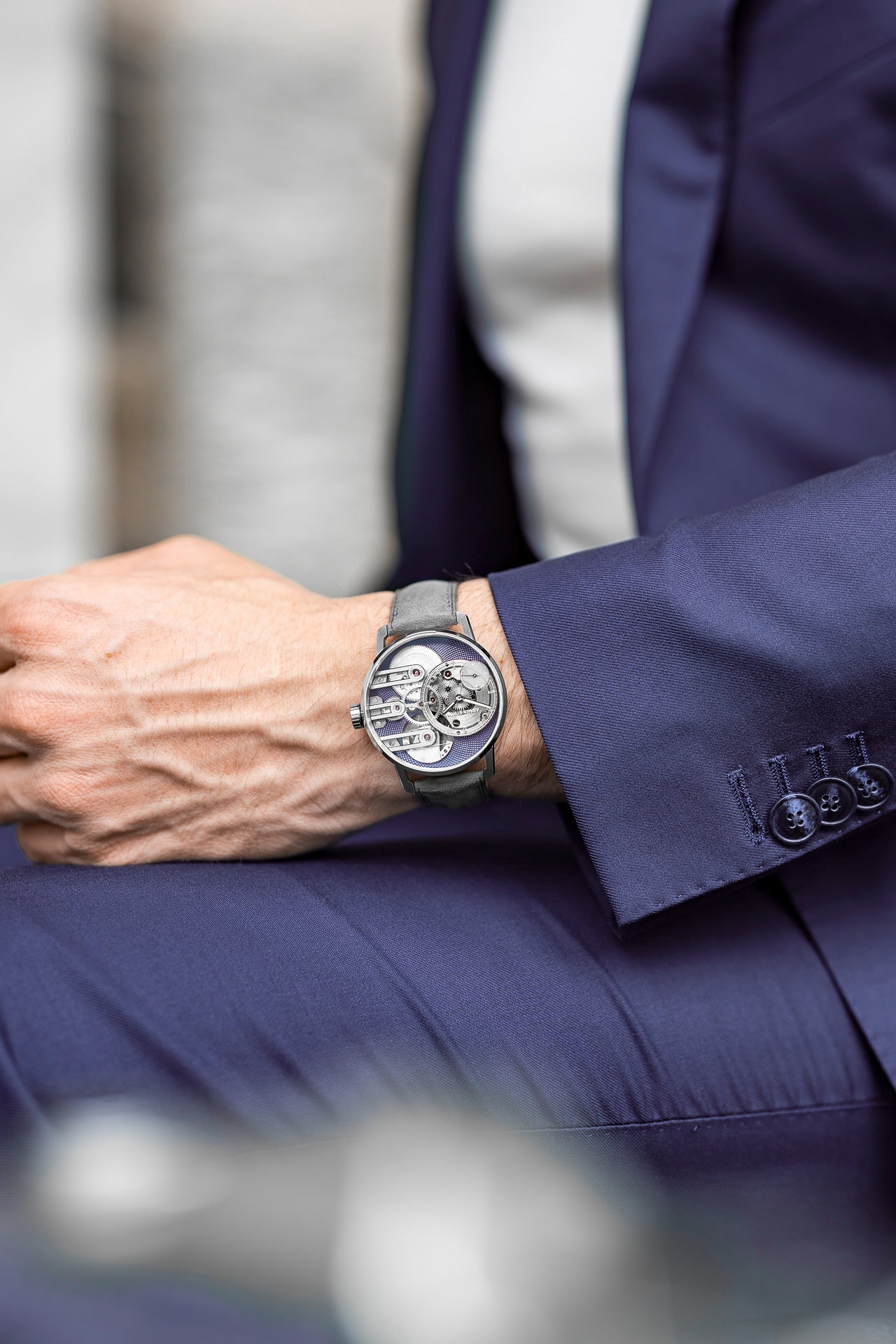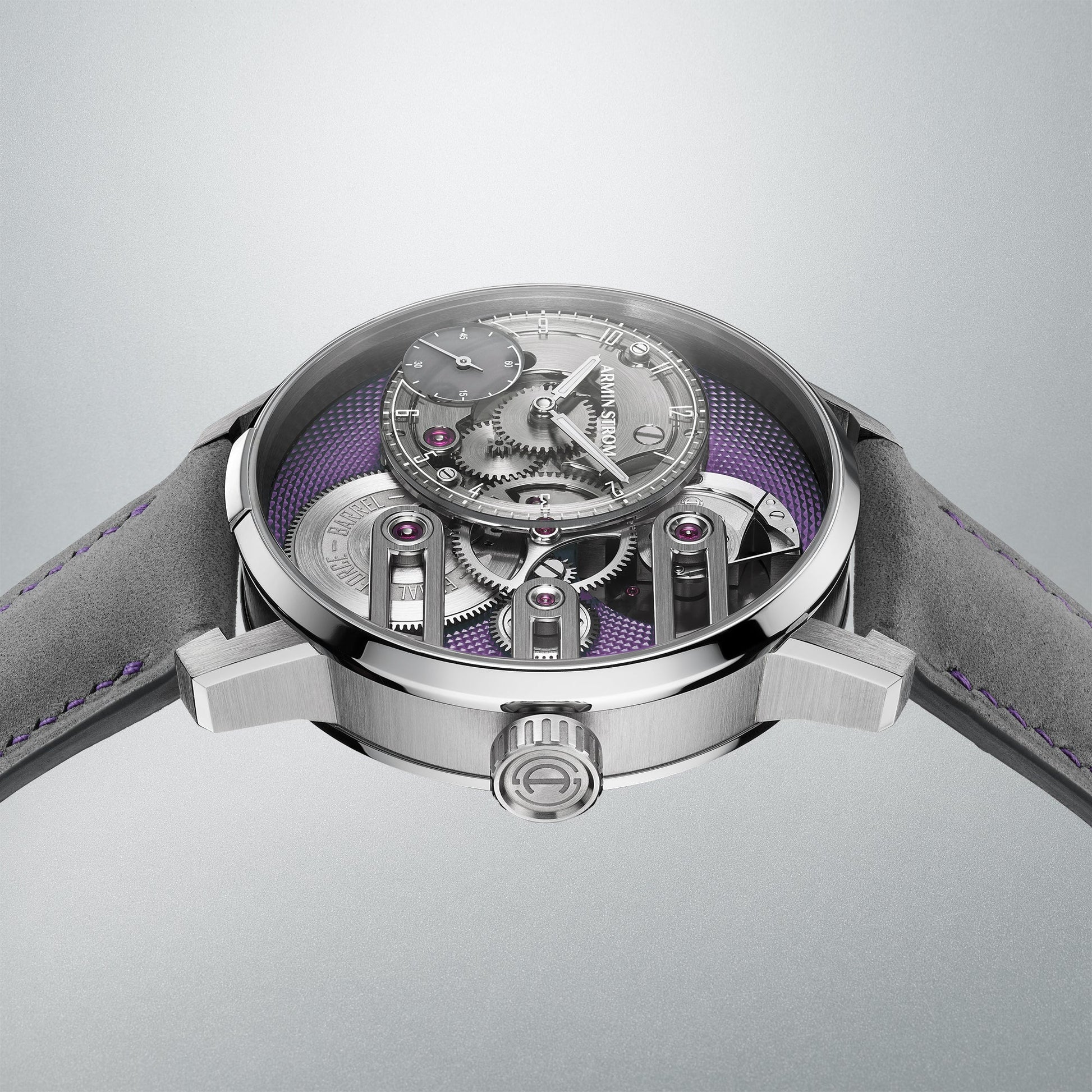 Experience the ultimate in watchmaking with the Armin Strom Gravity Equal Force Ultimate Sapphire Purple. Through its sapphire crystal case, witness the innovative constant-force mechanism in action and be captivated by the intricate movement at play. Accentuated by bold purple accents, this timepiece boasts a modern and avant-garde design, powered by the in-house calibre ASB19. From superior performance to statement-making artistry, this revolutionary watch transcends traditional horology and sets a new standard for high-end independent watchmaking. A must-have for collectors who appreciate the fusion of technology and craftsmanship.