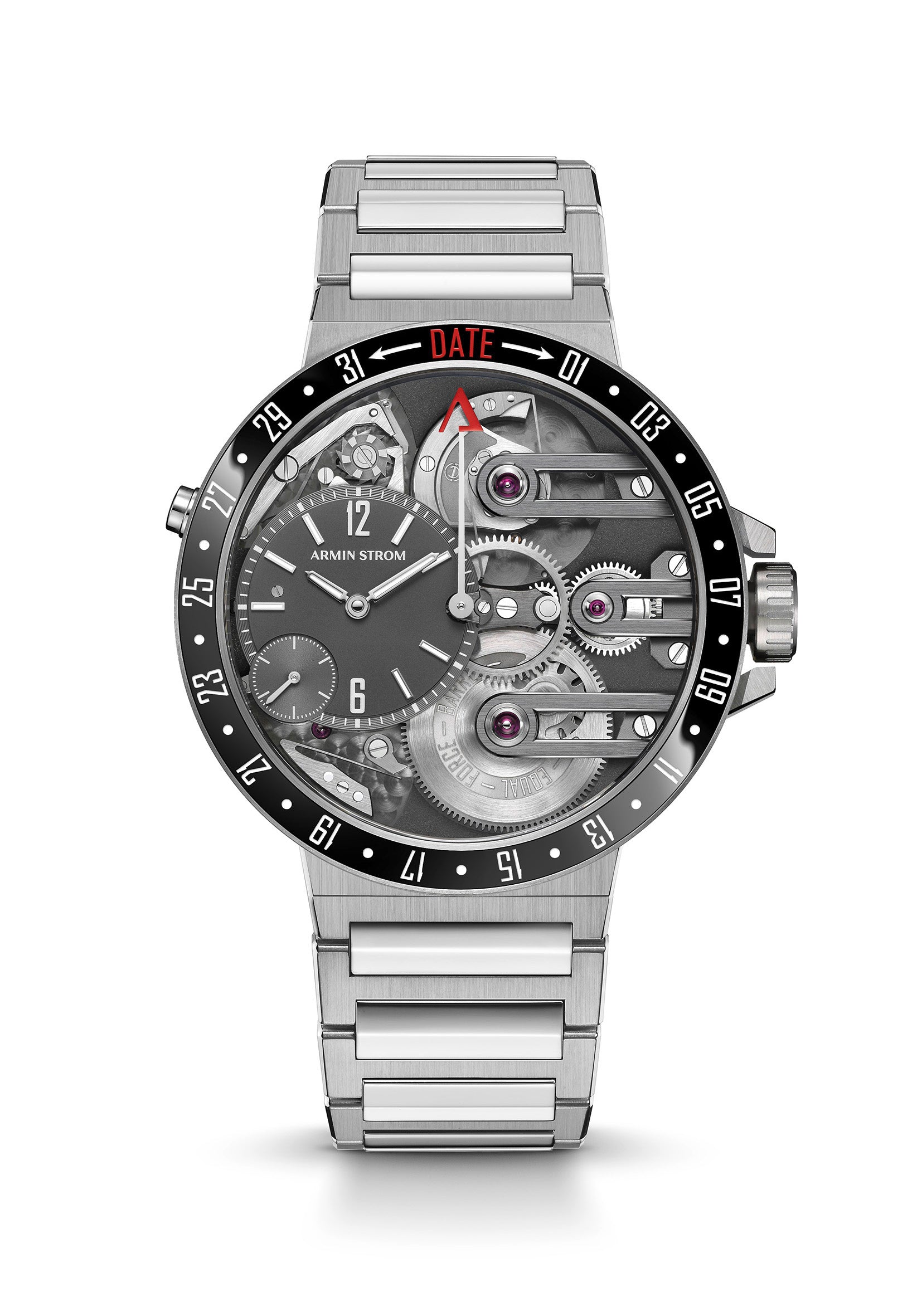 Experience the innovation of the Orbit, the first watch in the world to feature a date function that can be accessed on demand from the bezel. This steel and ceramic watch with an integrated bracelet combines athletic style with a unique column-wheel retrograde date and a micro-rotor automatic movement, complete with a torque-limiting barrel for precise timekeeping throughout the watch's autonomy.