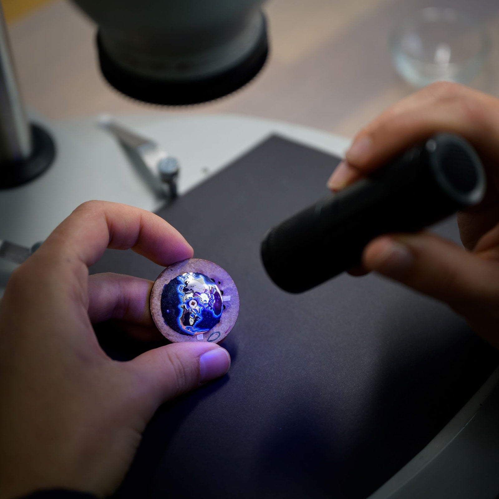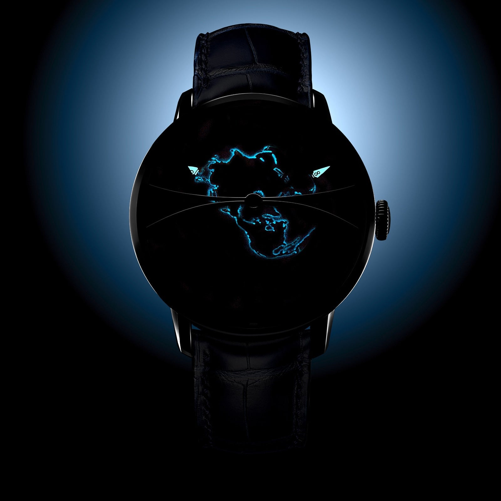 A Bridge across the World Offering unparalleled aesthetics, this “world time” complication watch harnesses all the design skills and finishing dexterity at Arnold & Son. The Globetrotter adds to the prestigious lineage of marine chronometers that John Arnold created for the British Navy in the 18th century, instruments of precision and time telling renowned the world over. At 45mm, the Globetrotter Steel has a large case. The hemisphere was the guiding principle for the design, requiring a certain amount of space. Everything resting above the equator, including America, Eurasia and Africa, is all visible in a wealth of detail. The model is a one-of-a-kind sculpture, the continents first rhodium-plated and polished. In contrast, mountain ranges are rendered matt. The oceans are hand-painted with numerous layers of lacquer in blue pigments, enriched with mother-of-pearl powder which imparts exceptional depth and shine. In a lighter tone enriched with Super-LumiNova, the shorelines stand out at night, further accentuating the textured elements of this miniature showcase of manual craftsmanship. Arnold & Son also offer the southern hemisphere and can customise the world map of Globetrotter collection pieces to special order.