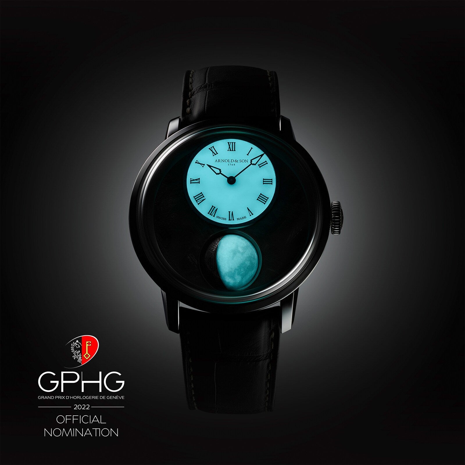 MADE OF STARDUST Arnold & Son coordinates materials and complication on this Luna Magna Platinum model. This high watchmaking timepiece with a spherical astronomical moon is adorned with a sand-coloured PVD-treated meteorite dial surrounded by a platinum case (Pt 950). To complete this limited edition’s cosmic references, the part of the moon in shadow is also made from meteorite. In a final harmonious touch, Luna Magna Platinum shines with a distinctive glow at night thanks to the Super-LumiNova coating on its moon hemisphere and opal subdial.