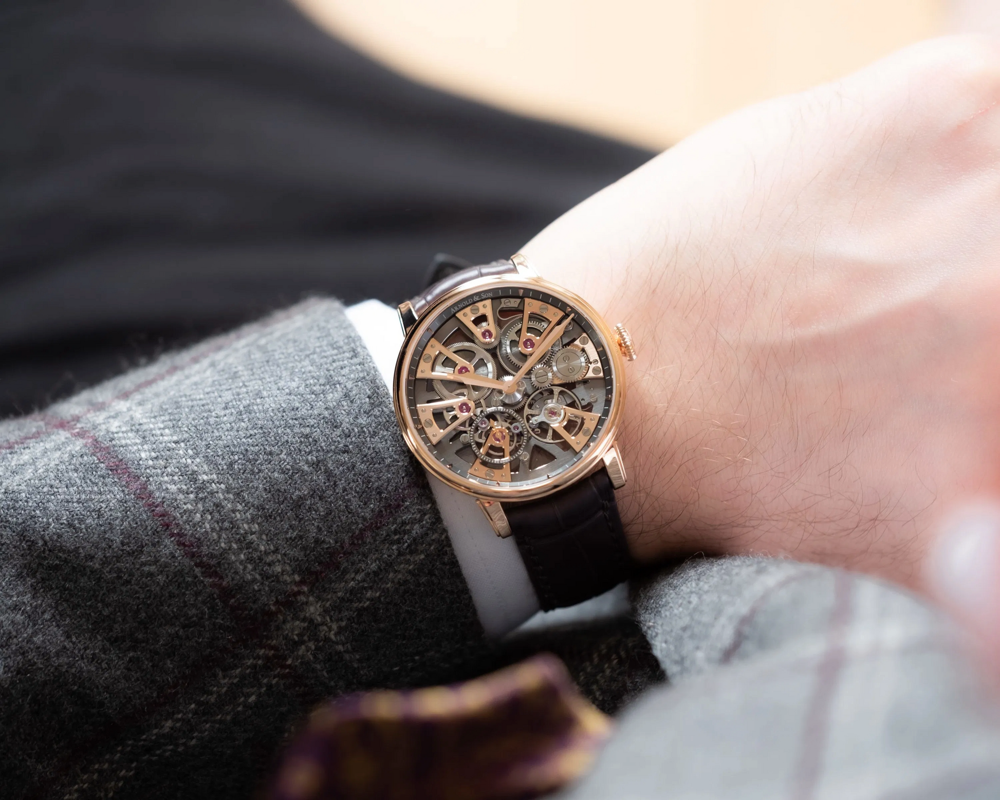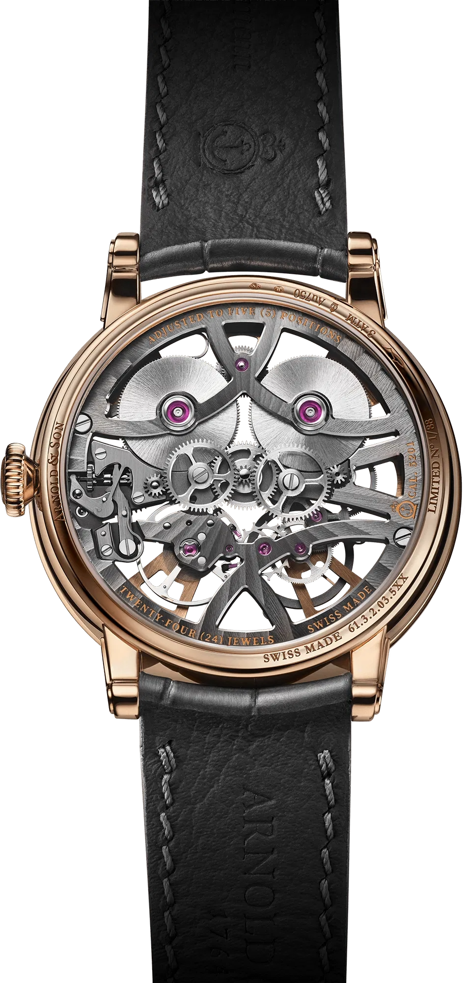 The Nebula collection's symmetrical elegance is taking on a new orbit. Arnold & Son displays its impressive watchmaking expertise, meticulous attention to detail, and bold designs. From its inception, Nebula has been a shining star. Its magnificent A&S5201 caliber serves as the gravitational center of this collection, defining its appearance, character, and power. With a movement featuring the most advanced finishes yet, the Nebula collection is constantly evolving.