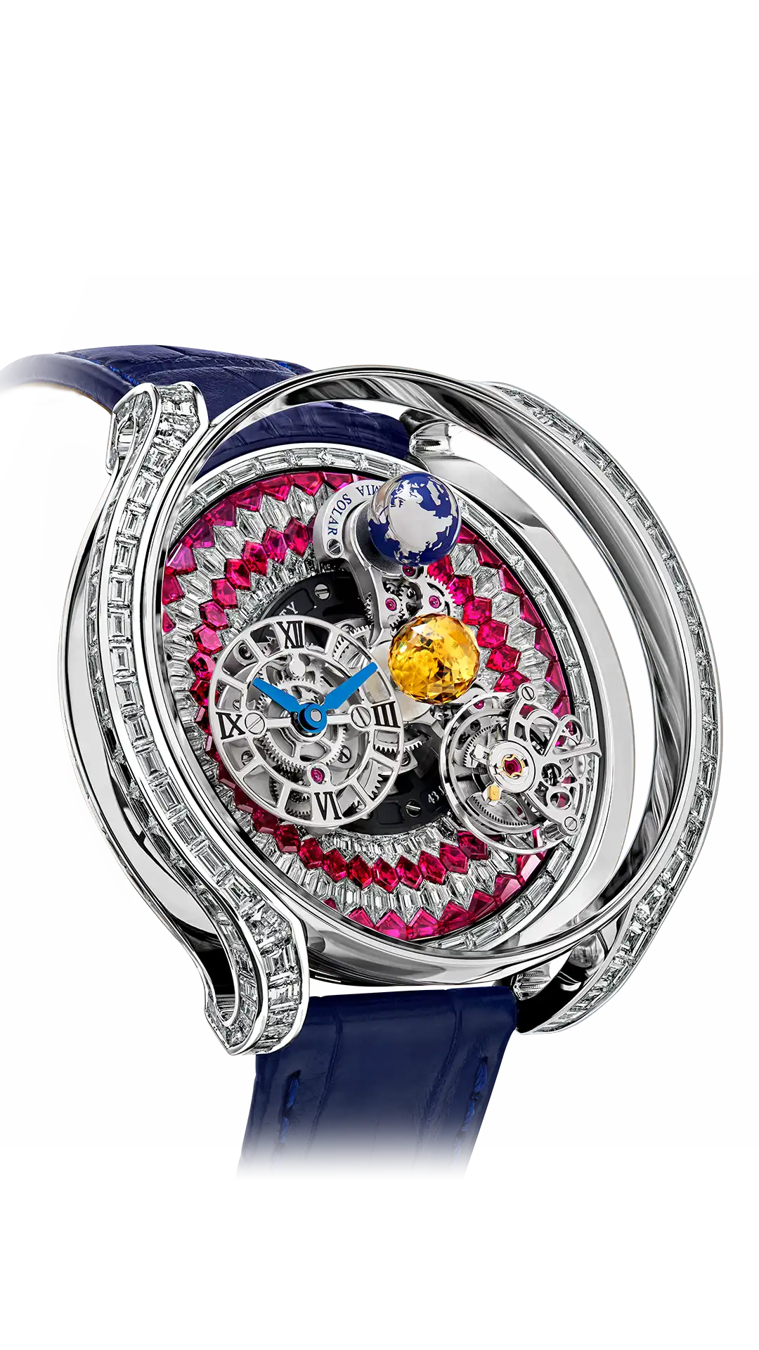 Platform Base : Blued Titanium with 7 Cabochon-cut stone Planets and White Gold Constellations