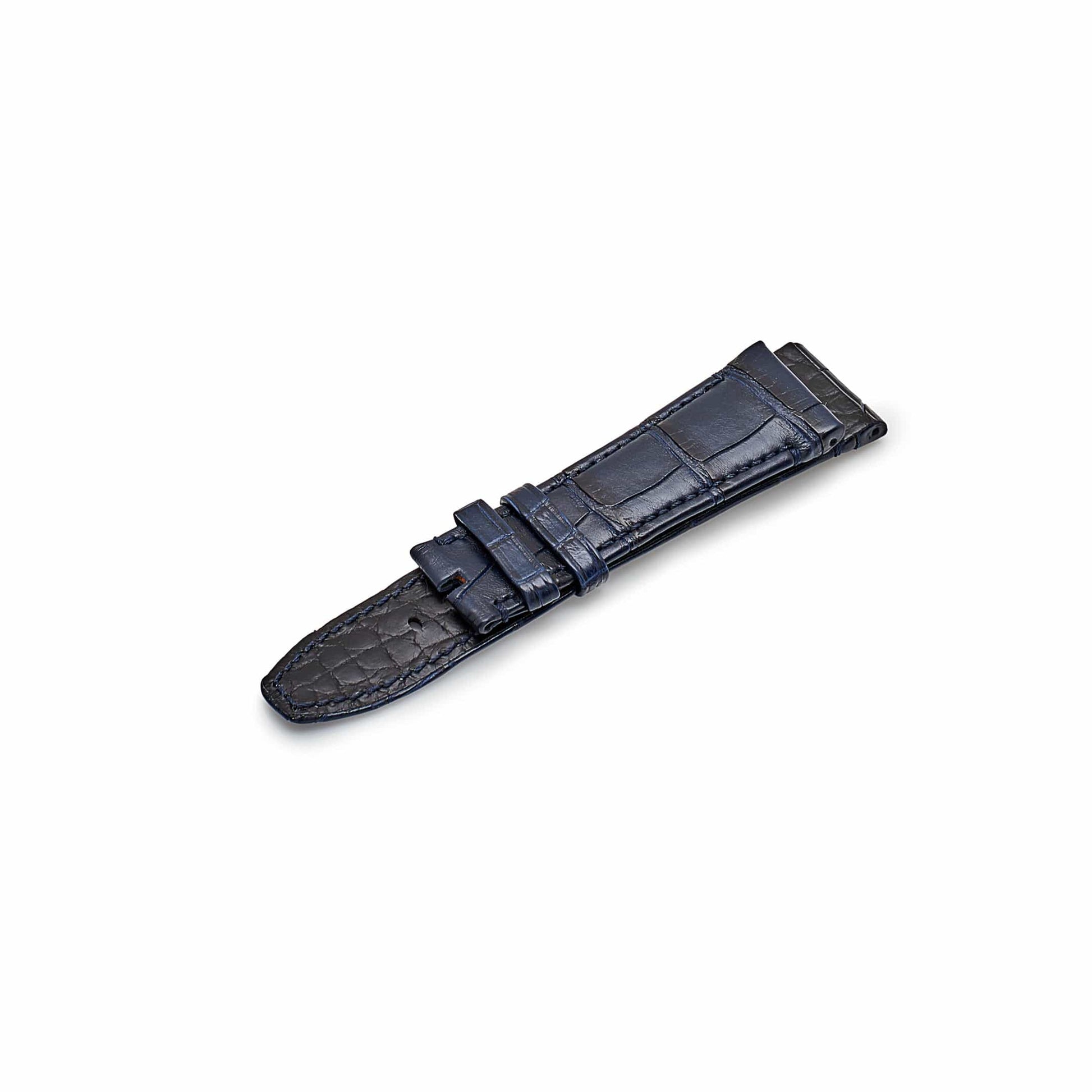 This Audemars Piguet Code 11.59 is designed in a 41mm rose gold case with a smooth round bezel. It features a lacquered smoked blue dial with three sub-dials. Its functions include an integrated column-wheel chronograph mechanism and flyback capabilities, allowing an instant restart of the stopwatch without stopping and resetting the time.