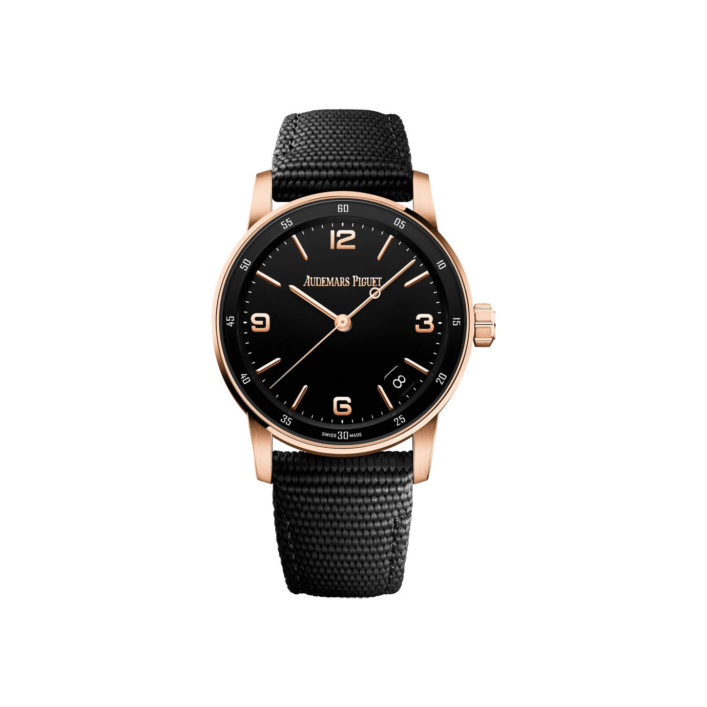 Unworn Audemars Piguet Code 11.59 PERPETUAL CALENDAR 26393NR.OO.A002KB.01. 41 mm, Lacquered black dial, 18-carat pink gold applied hour-markers and hands, 24-carat pink gold applied logo in galvanic growth, lacquered black inner bezel, 18-carat pink gold case, glareproofed sapphire crystal and caseback, 4302 calibre, Selfwinding movement, 70 h power reserve, 32 jewels, Black rubber-coated strap with 18-carat pink gold pin buckle. Water resistant to 30 m.