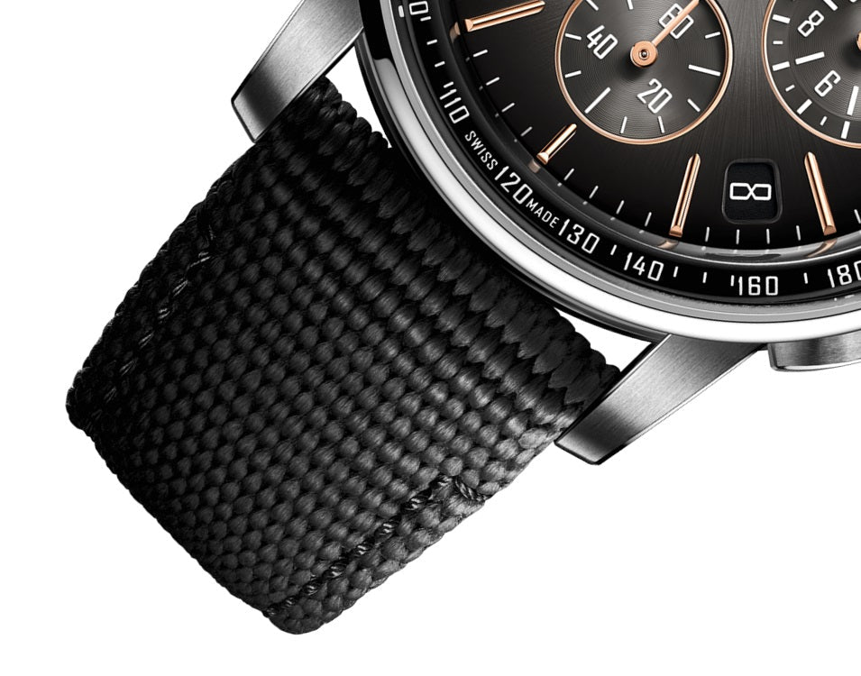- Functions: Flyback chronograph, hours, minutes, small seconds and date