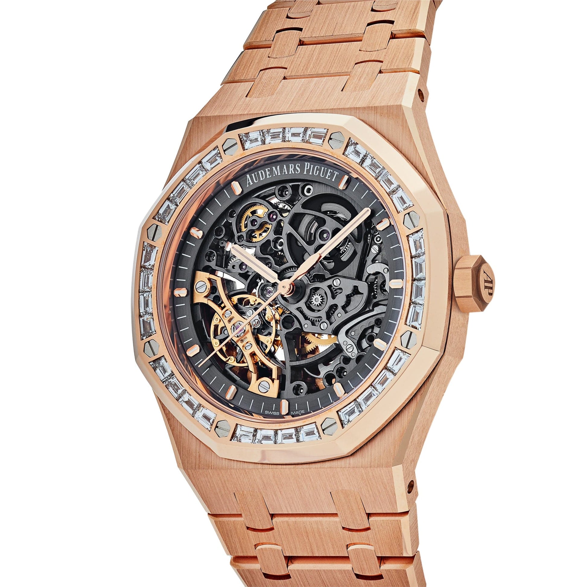 Audemars Piguet Royal Oak 15412OR.ZZ.1220OR.01 Double Balance Wheel Openworked Rose Gold Baguette Bezel (2021)