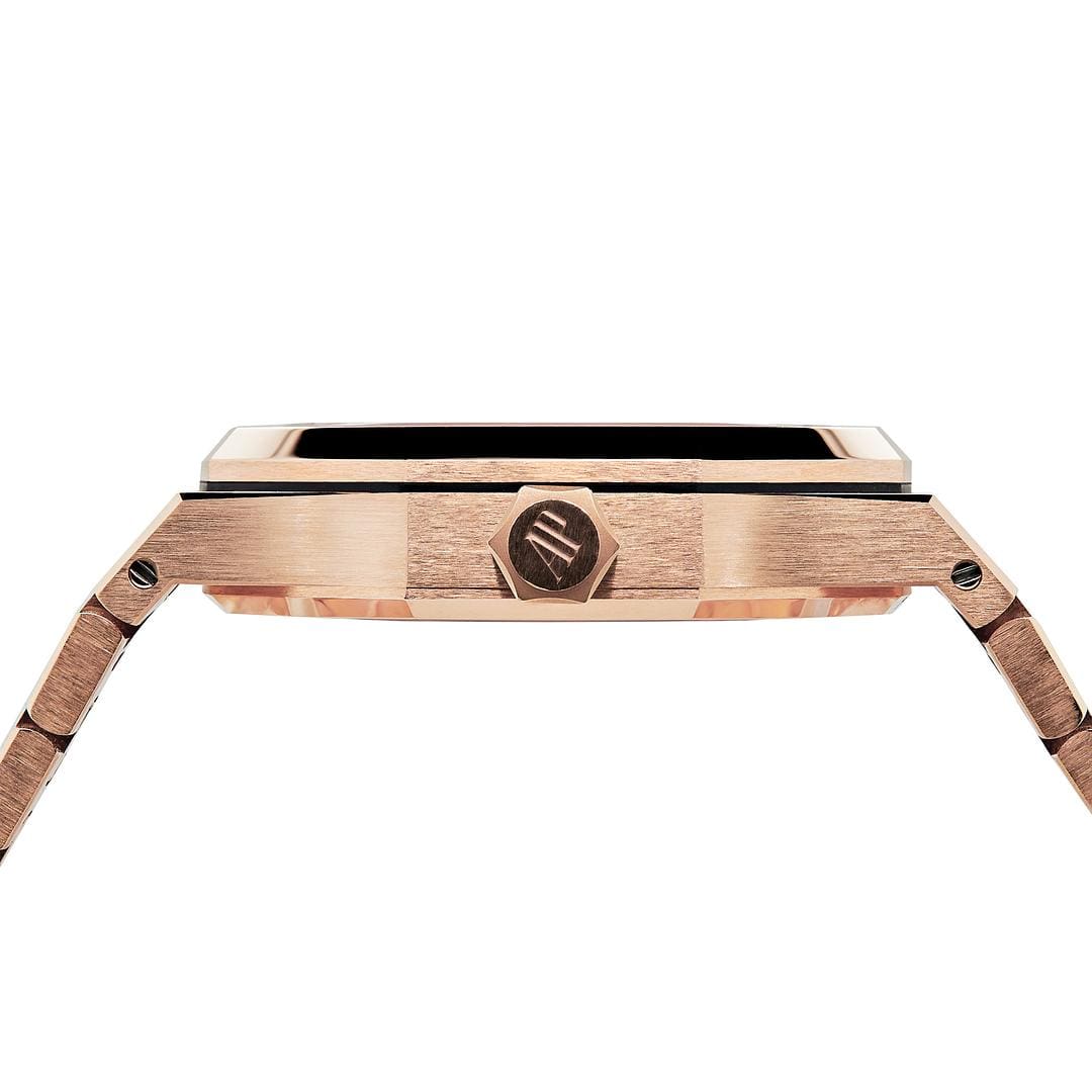 This Royal Oak Double Balance Wheel Openworked is designed in a 37mm 18-carat rose gold case and rose gold bezel. The beautiful open-worked rhodium-toned dial contains rose gold applied hour markers and is protected by a glareproofed sapphire-crystal and caseback. The watch is crafted on an 18-carat rose gold bracelet with AP folding clasp.