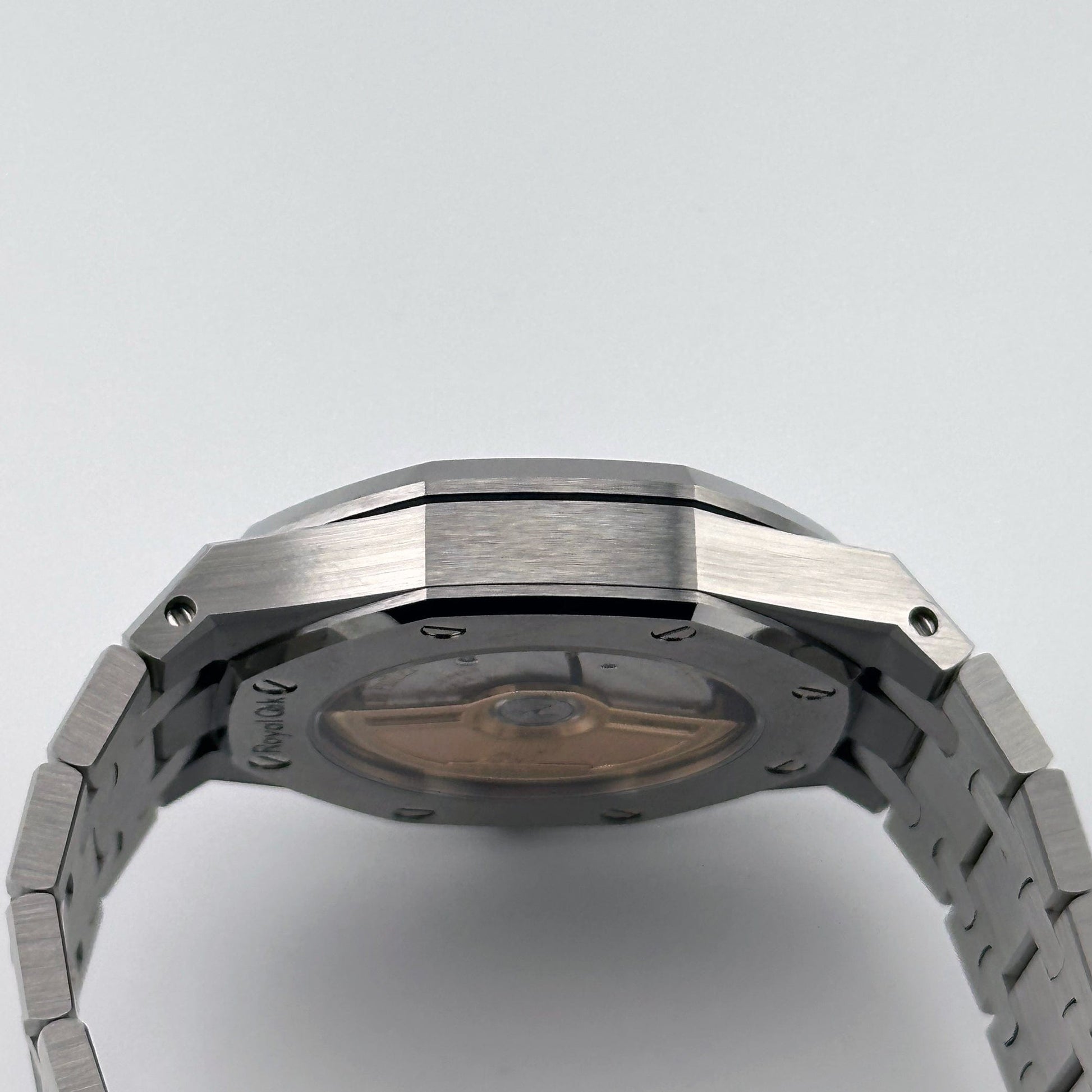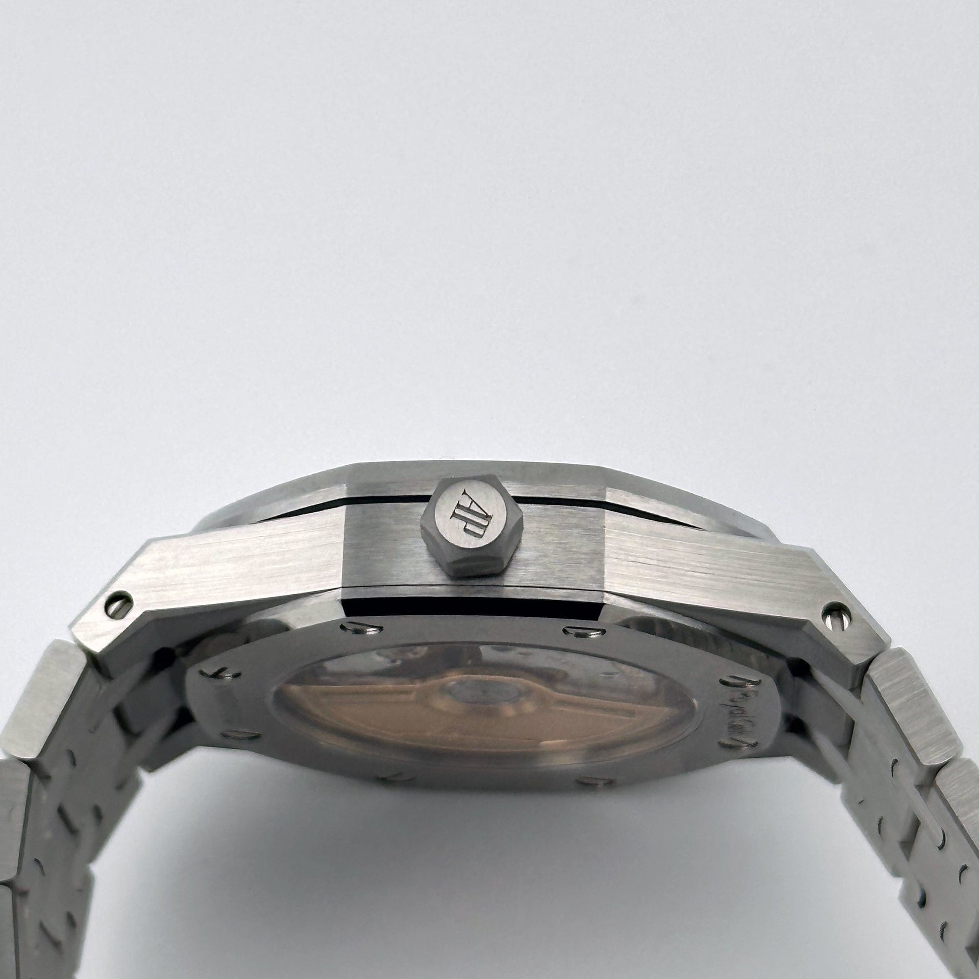 The Audemars Piguet Royal Oak 77350ST.OO.1261ST.01 is a sophisticated interpretation of the iconic Royal Oak, crafted in stainless steel with timeless elegance. The 34mm case is perfectly proportioned, making it a versatile choice for those who appreciate refined design in a wearable size. The signature octagonal bezel with exposed hexagonal screws highlights the iconic Royal Oak aesthetic.