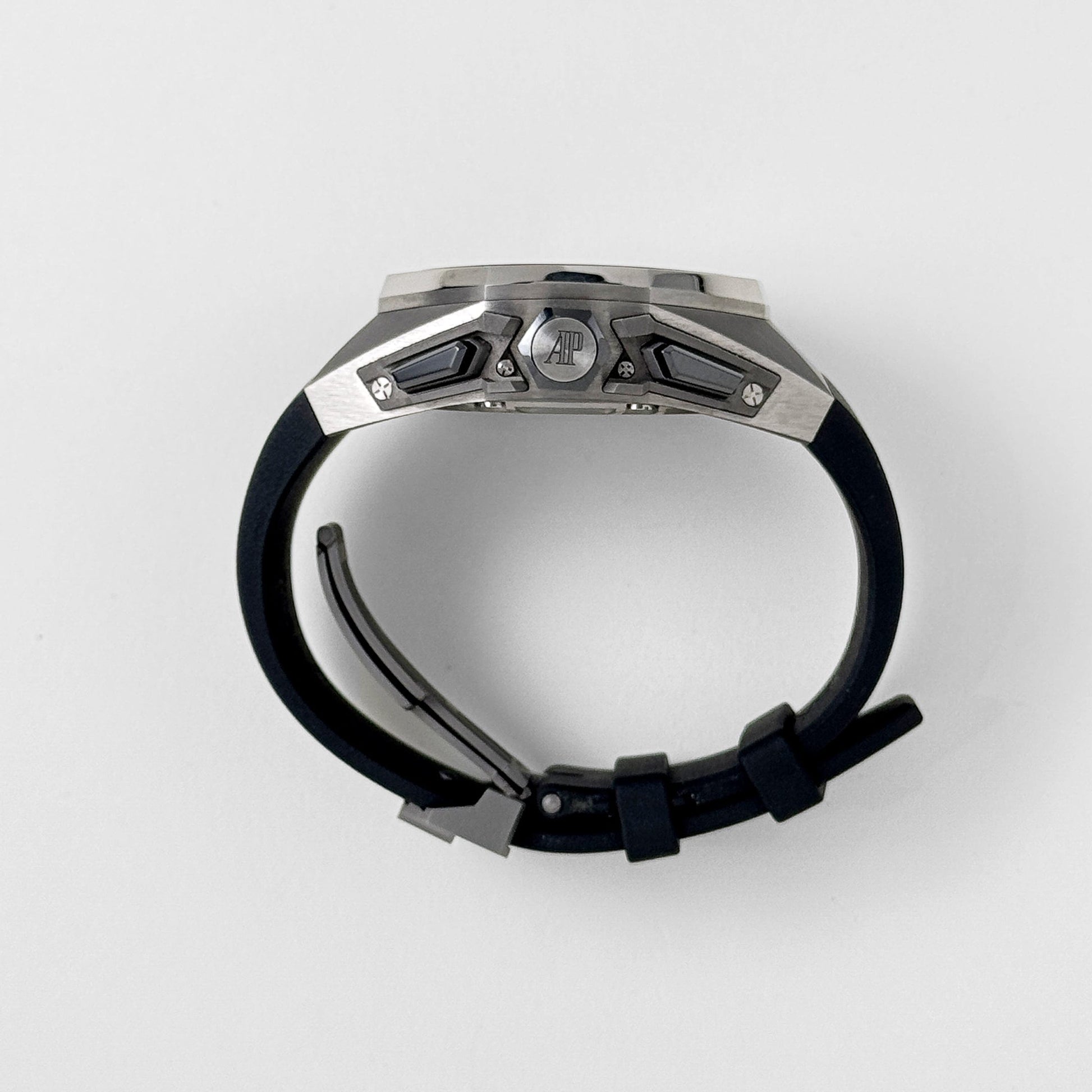 The openwork design allows the tourbillon’s balance oscillation to be admired from the front, harmonizing with the chronograph’s interaction across the dial. With water resistance to 100 m and refined ergonomic touches despite its bold scale, this 26587TI achieves a balance between technical audacity and wearable complexity—ideal for collectors who value substance, structure, and complication in one bold silhouette.