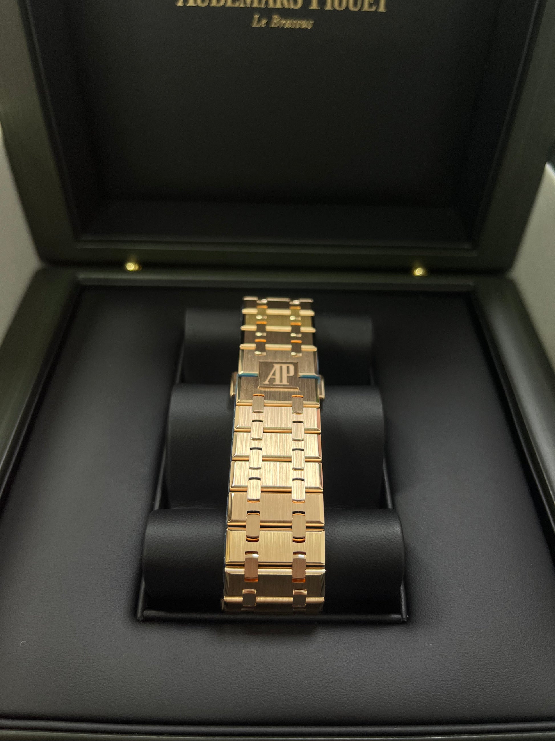 Completing the look is the 18K rose gold bracelet, secured with an AP folding clasp for a comfortable, luxurious fit. Whether you’re stepping into a boardroom or an evening event, the Royal Oak 15510OR is a statement of timeless prestige.
