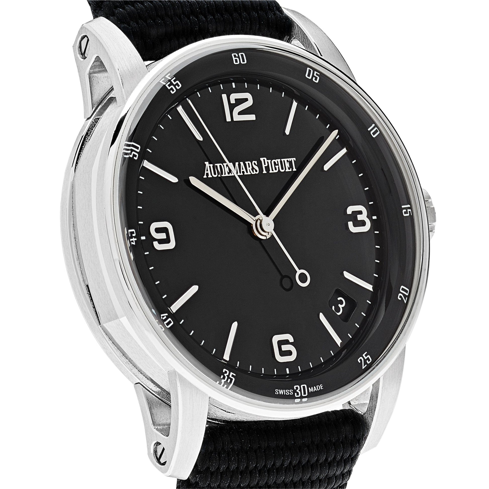 Paired with a black alligator leather strap, this timepiece is powered by a reliable self-winding mechanism, making it a versatile and stylish choice for collectors seeking a modern interpretation of Audemars Piguet’s timeless design principles.