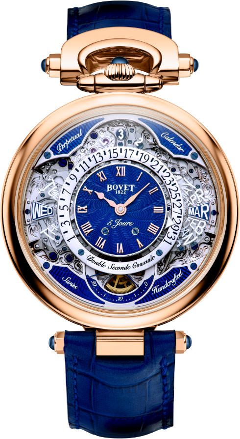 The BOVET Virtuoso VII stands as a true triumph in haute horlogerie, reflecting the brand’s un matched craftsmanship and inventive design. Its patented Amadeo convertible case lets you effortlessly switch between a wristwatch, table clock, or pocket watch without any tools. Encased in 43.3mm of 18-carat rose gold, it features two stunning dials: a grand feu enamel side with hours, minutes, seconds, and a perpetual calendar, and a reverse side showcasing an openworked movement with a fly ing tourbillon and power reserve indicator. Powered by the hand-wound Caliber 13BM12AIQPR with 120 hours of power reserve, this watc h reveals exquisite hand-engraved details and Côtes de Genève finishing. Water-resistant to 30 meters and paired with a luxurious al ligator leather strap, the Virtuoso VII is the perfect choice for collectors who value versatility, complexity, and exceptional arti stry.