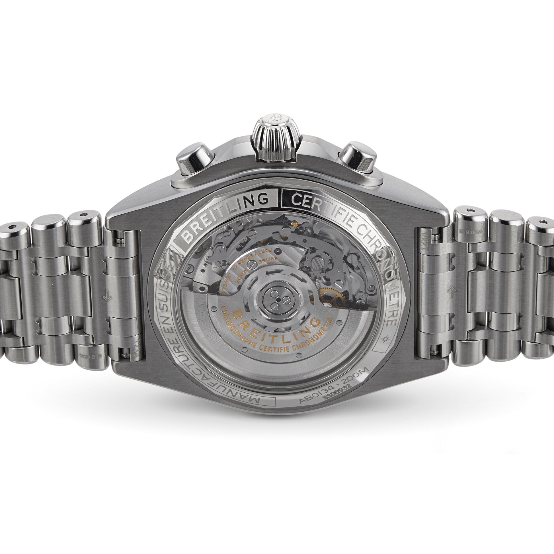 A mechanical timepiece inspired by style and elegance Chronomat heritage to confidently handle any pursuit Black dial framed by an iconic bezel with four rider tabs 42mm stainless steel case with coordinating Rouleaux bracelet Powered by the Breitling 01 COSC certified calibre movement THE CHRONOMAT COLLECTION The Chronomat was first introduced in 1984, bravely going against the trend of the day for extra-thin quartz timepieces, and instead presenting a robust, impressively proportioned mechanical watch. And it’s a risk that paid off – the model proved a popular celebration of Breitling’s centenary and hailed the return of the mechanical chronograph to prominence. This Chronomat B01 42 is characterised by a robust, stainless steel case, the iconic bezel with four rider tabs, and the signature Rouleaux bracelet. OPTIMUM PERFORMANCE An elegant stainless steel bracelet presents the 42mm case, featuring an iconic bezel with four rider tabs. The black dial features silver-tone hands and indexes, three sub-dials, a date display, and subtle yet striking red details. For optimum performance, this timepiece is powered by the Breitling 01 calibre movement, certified by the COSC.