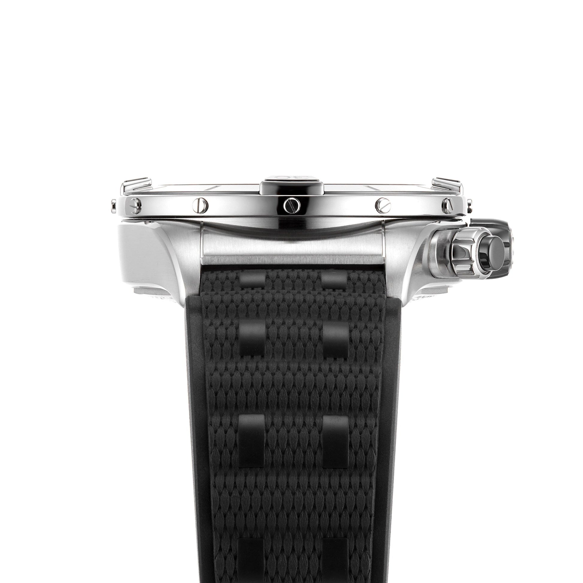 A mechanical timepiece inspired by style and elegance Chronomat heritage, equipped to confidently handle any pursuit Bold black dial framed by an iconic bezel with four rider tabs 44mm stainless steel case with a black rubber Rouleaux-inspired bracelet Powered by the Breitling 01 COSC certified calibre movement BEAUTIFULLY PROPORTIONED The Chronomat was first introduced in 1984, bravely going against the trend of the day for extra-thin quartz timepieces, and instead presenting a robust, impressively proportioned mechanical watch. And it’s a risk that paid off – the model proved a popular celebration of Breitling’s centenary and hailed the return of the mechanical chronograph to prominence. This Chronomat B01 42 is characterised by a robust, stainless steel and 18K red gold case, the iconic bezel with four rider tabs, and the signature Rouleaux bracelet. RELIABLE AND ACCURATE A black rubber Rouleaux-inspired strap presents a 44mm stainless steel case, housing a black dial with silver-tone hands and indexes alongside 3 sub-dials. Powered by the Breitling 01 calibre movement, this timepiece showcases extreme reliability and accuracy.