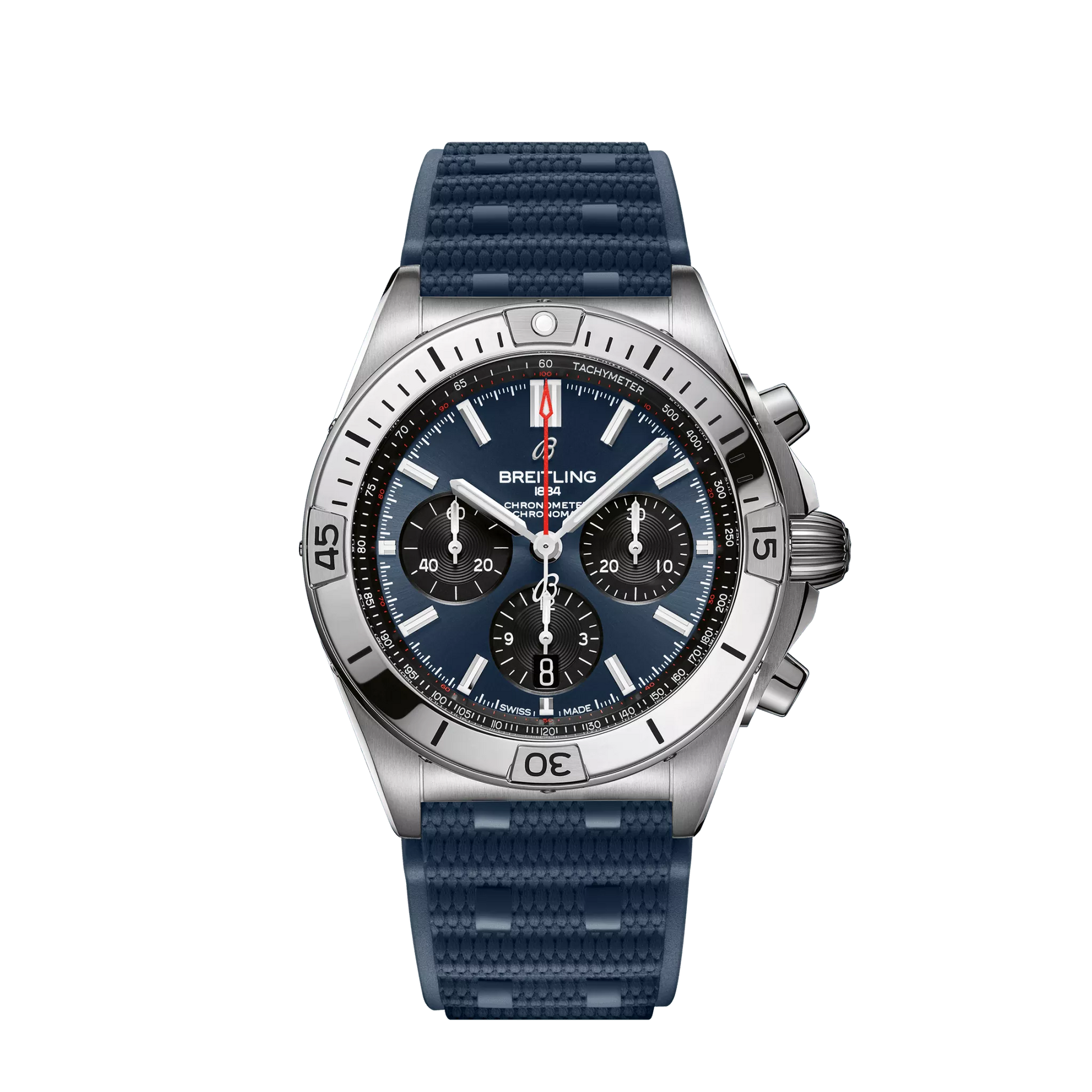 Breitling Chronomat B01 42mm Blue and Black Dial Stainless Steel Blue Rubber Strap AB0134101C1S1
