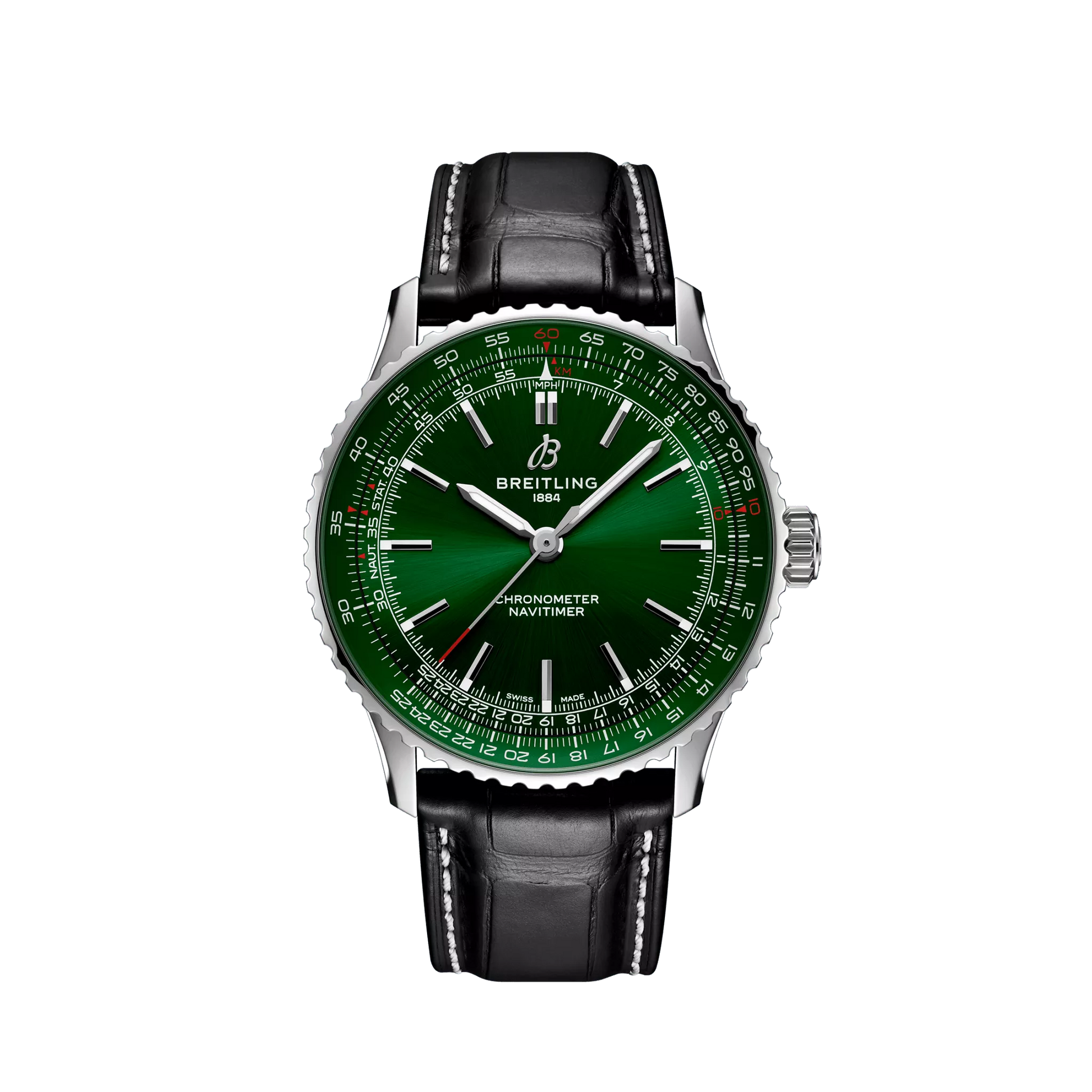 Breitling Navitimer 41.0 mm Green Dial Stainless Steel Black and Leather Strap A17329371L1P1