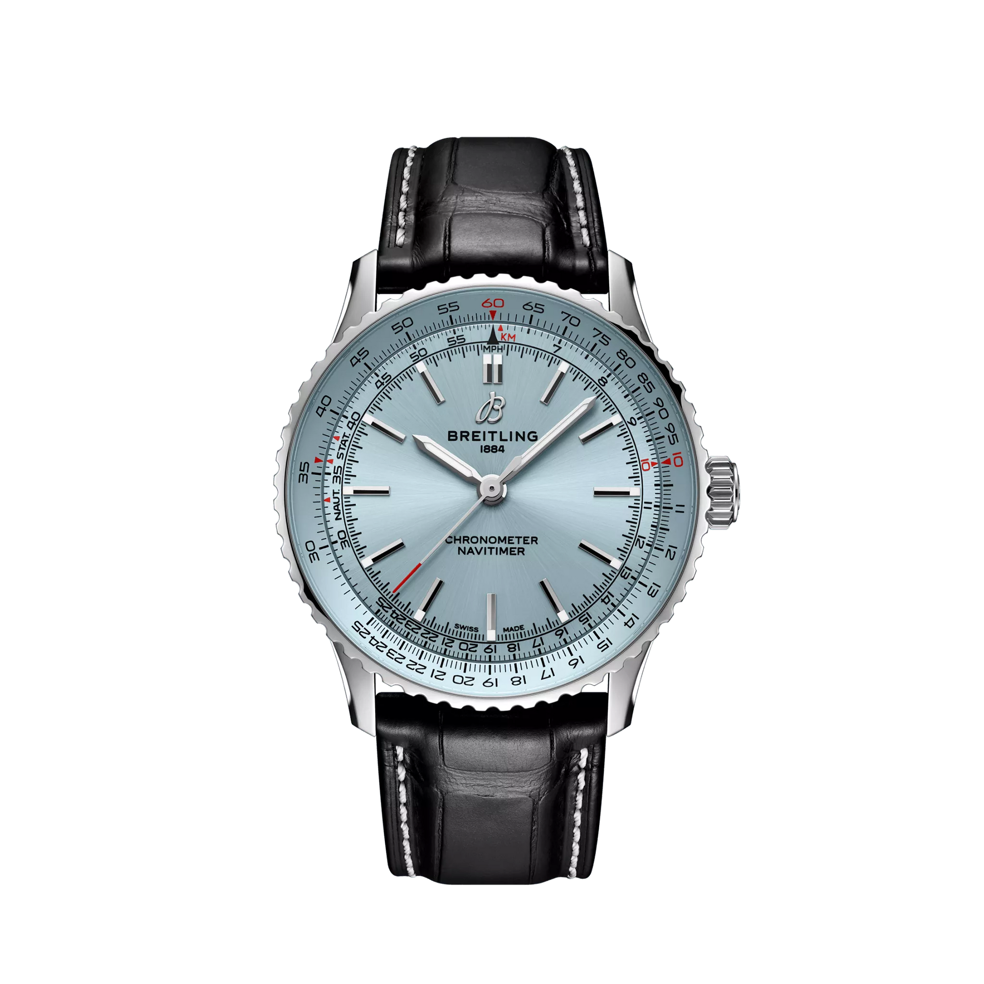 Breitling’s most versatile Navitimer—for the journey. The Navitimer is one of the most recognizable watches ever made. It’s on collectors’ lists of the greatest watches of all time. What began in 1952 as a tool for pilots has gone on to mean something profound to every single person who has had this timepiece along on their personal journey. The Navitimer Automatic and Automatic GMT 41 distill the iconic look, omitting the chronograph yet preserving a balanced dial composition. The central placement of the 24-hour scale on the GMT and the Automatic’s clean face, ensure the intricate slide rule stands out while streamlining the overall aesthetics. Further refining the collection, the notched bezel was incorporated for a contemporary touch, and alternating polished and brushed finishes add a dynamic play of light. Straps in leather and bracelets with a seamless butterfly clasp offer comfort and convenience. The palette includes colorful dials, encased in a choice of stainless steel or 18 k red gold. This reinvention of the Navitimer, marrying the classic with the contemporary, is tailored for enthusiasts and the style-conscious alike, promising Breitling’s commitment to heritage and innovation in each timepiece.