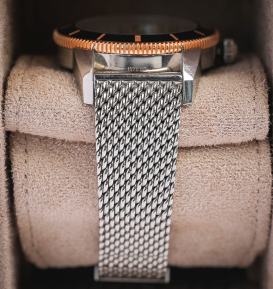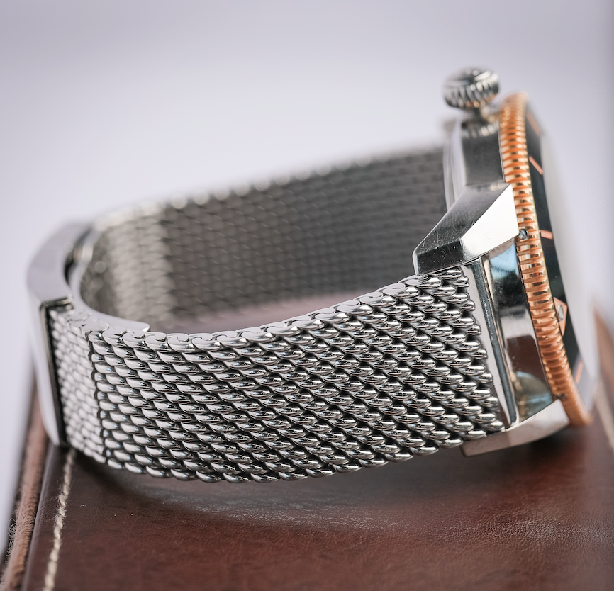 Inspired by the original Superocean from the 1950s, the Superocean Heritage combines iconic design features with a modern touch. Sporty and elegant, the Superocean Heritage is a true embodiment of style at sea. Featuring the iconic triangular-shaped hands as well as a unidirectional bezel with a polished ceramic ring, the Superocean Heritage is an elegant looking diver’s watch. Available in a variety of sizes and materials including stainless steel and 18k red gold, the Superocean Heritage B20 Automatic features a range of black or blue dials. Offered either with a matching mesh bracelet, or a “mesh-styled” rubber strap fitting a folding buckle, this Superocean Heritage is powered by the Breitling Manufacture Caliber B20, a COSC-certified chronometer based on the Tudor Caliber MT5612.
