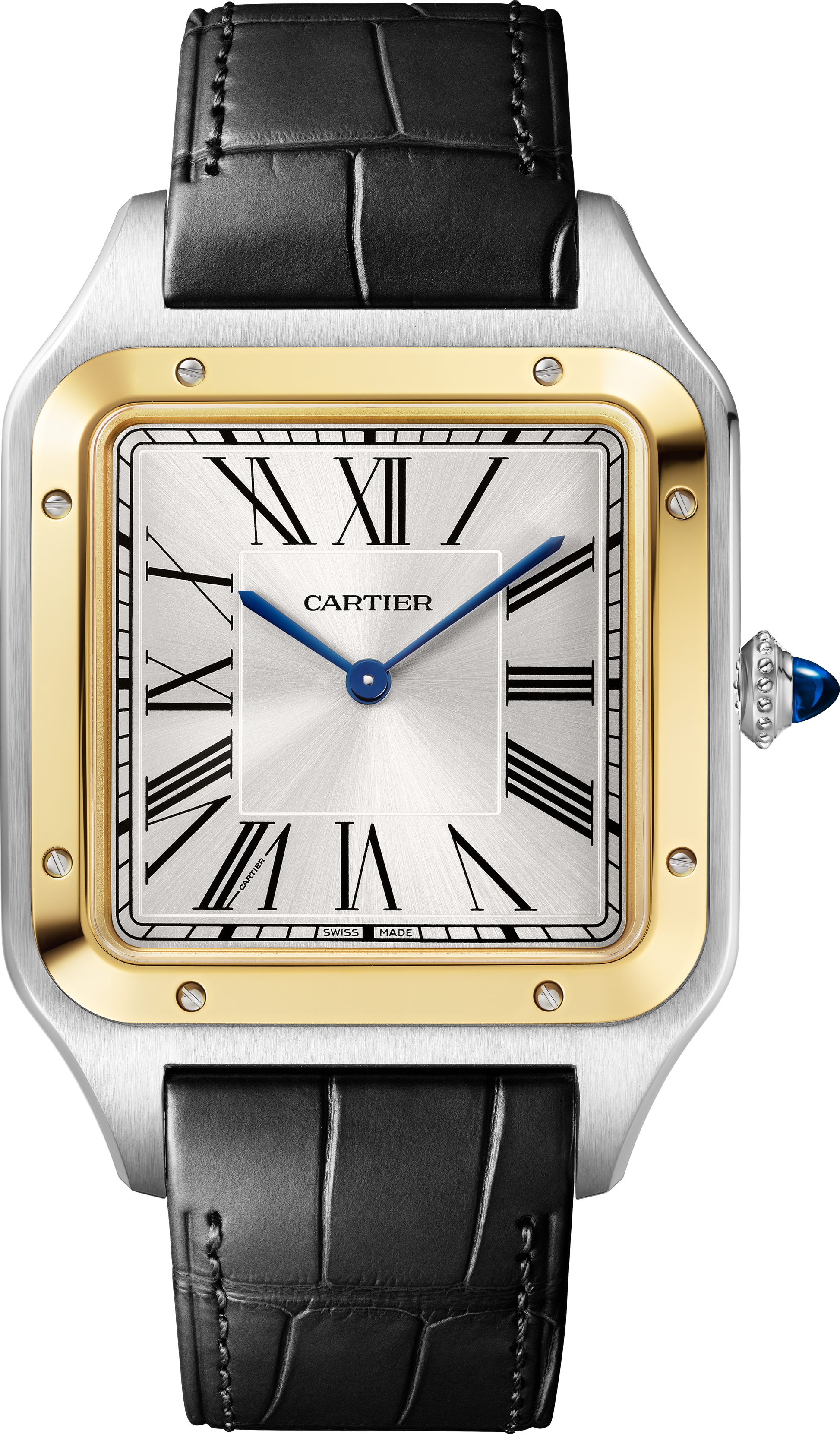1904, Louis Cartier granted the wish of the famous Brazilian aviator Alberto Santos Dumont: to be able to tell time while f lying. The birth of one of the first ever wristwatches sealed the bonds of friendship between these two pioneers. The rounded angle s of the dial, the seamless curve of the horns, and the exposed screws made for an iconic watch that would inspire countless reinter pretations.