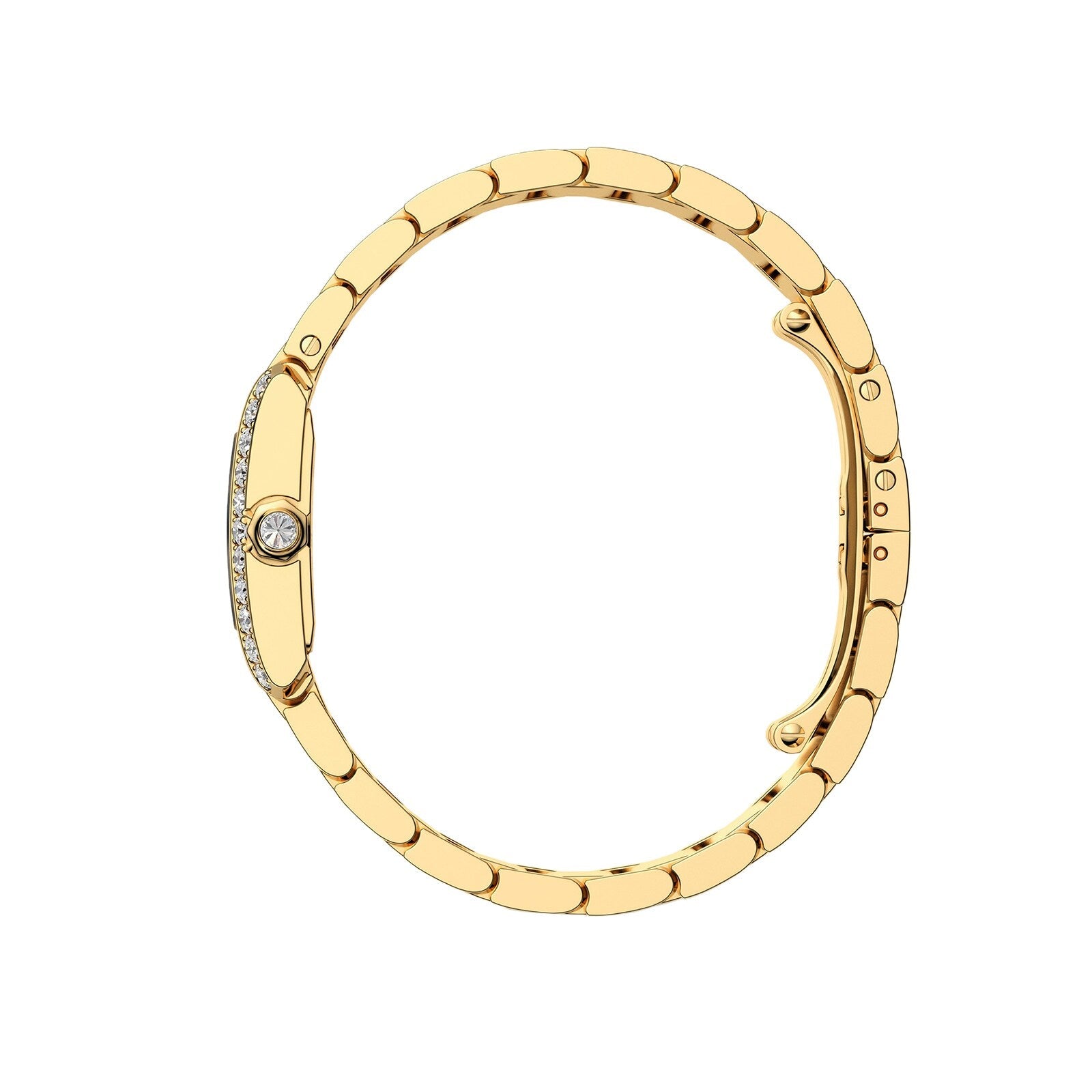 Tank Française - legendary heritage Tank collection lineage dating back to 1917 Golden sunray dial with Roman numeral markers Presented in a 26mm yellow gold case with faceted crown, set with 23 brilliant-cut diamonds Secured with a matching yellow gold bracelet LEGENDARY STATUS The first Tank watch was expertly crafted by Cartier in 1917 as a gift to General Pershing of the American army during World War 1. Since then, the Tank collection has gone on to become a legendary symbol of timekeeping mastery - with bold, distinctive shapes, luxurious materials and unparalleled style. The Tank Française member of the Tank collection was launched in 1996, debuting a metal bracelet that works in perfect harmony with the case. This new, monobloc metal design, energises the ultra-profiled lines of the watch in both its aesthetic and ergonomic approach. WARM GOLD AND GLISTENING DIAMONDS Reflecting the light from every angle, this sophisticated model is presented in a 26mm yellow gold case with a faceted crown set with 23- briliant cut diamonds, totalling 0.78 carats. Adding to the elegant aesthetic, the stunning golden sunray dial displays Roman numeral hour markers, alongside the collection's iconic blued-steel sword-shaped hands. A high performance quartz movement provides impeccable precision and reliability, while water resistance to 3 bar (30 metres) further enhances performance.