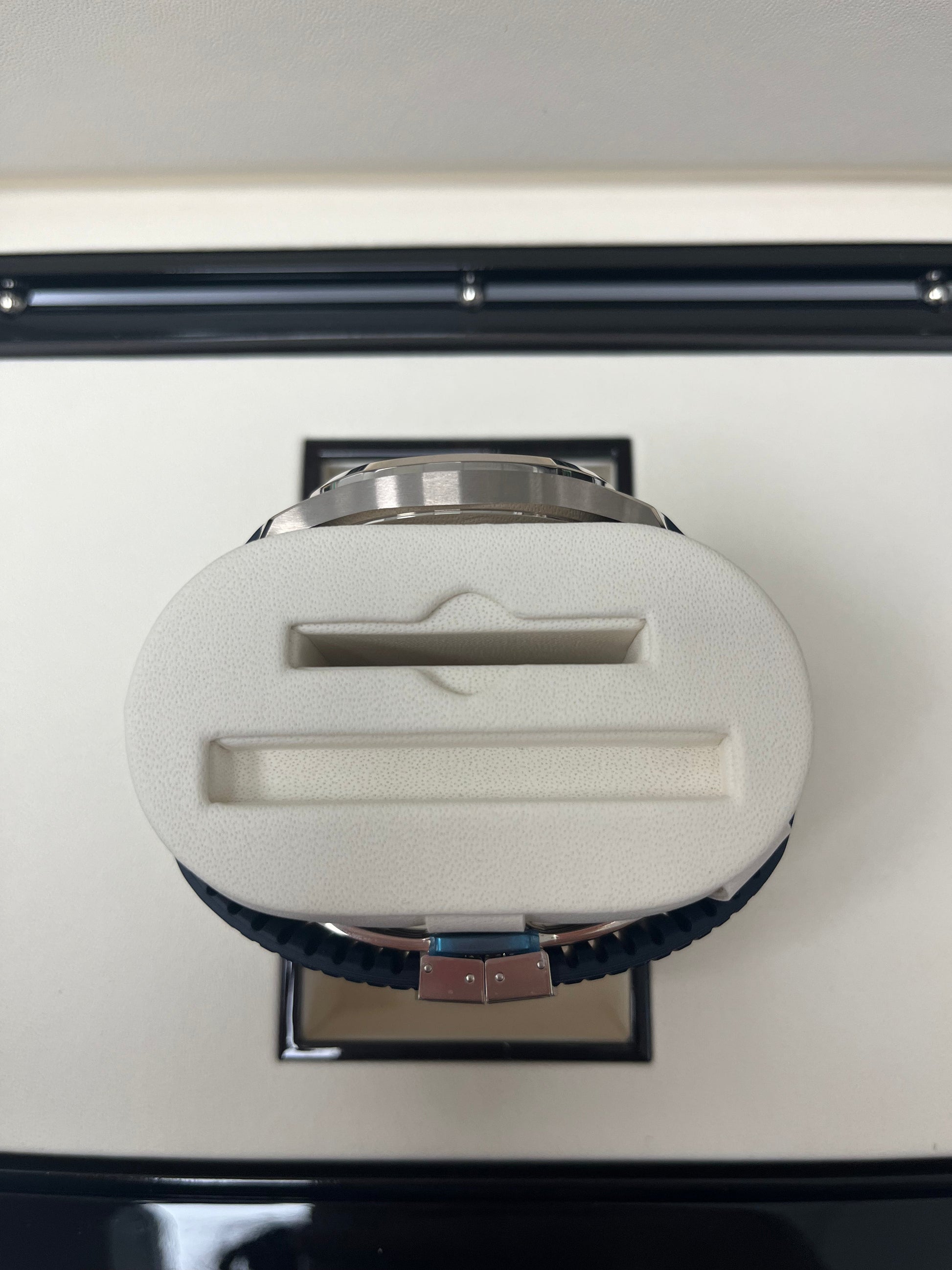 Paying tribute to the 20th anniversary of the Aquanaut launched in 1997, the men’s model is now available in 42.2-millimeter “Jumbo” format. It features an embossed dial subtly gradated from black to night blue. Decidedly masculine looks for this incarnation of casually elegant chic framed by a delicately satin-finished bezel. The white-gold case is water resistant to 120 m and protects the self-winding caliber 324 S C movement.