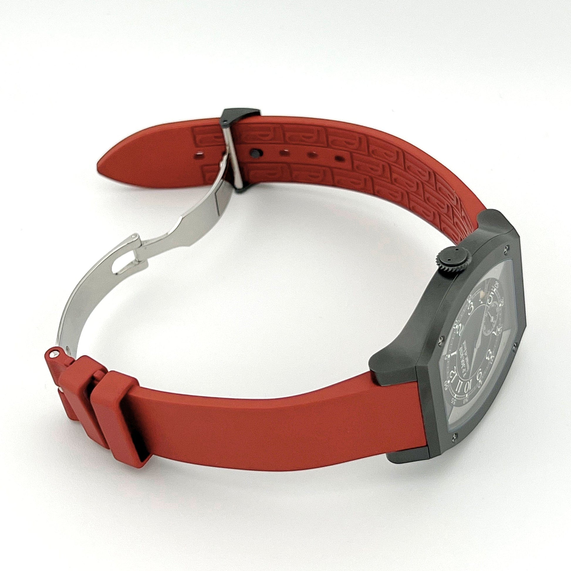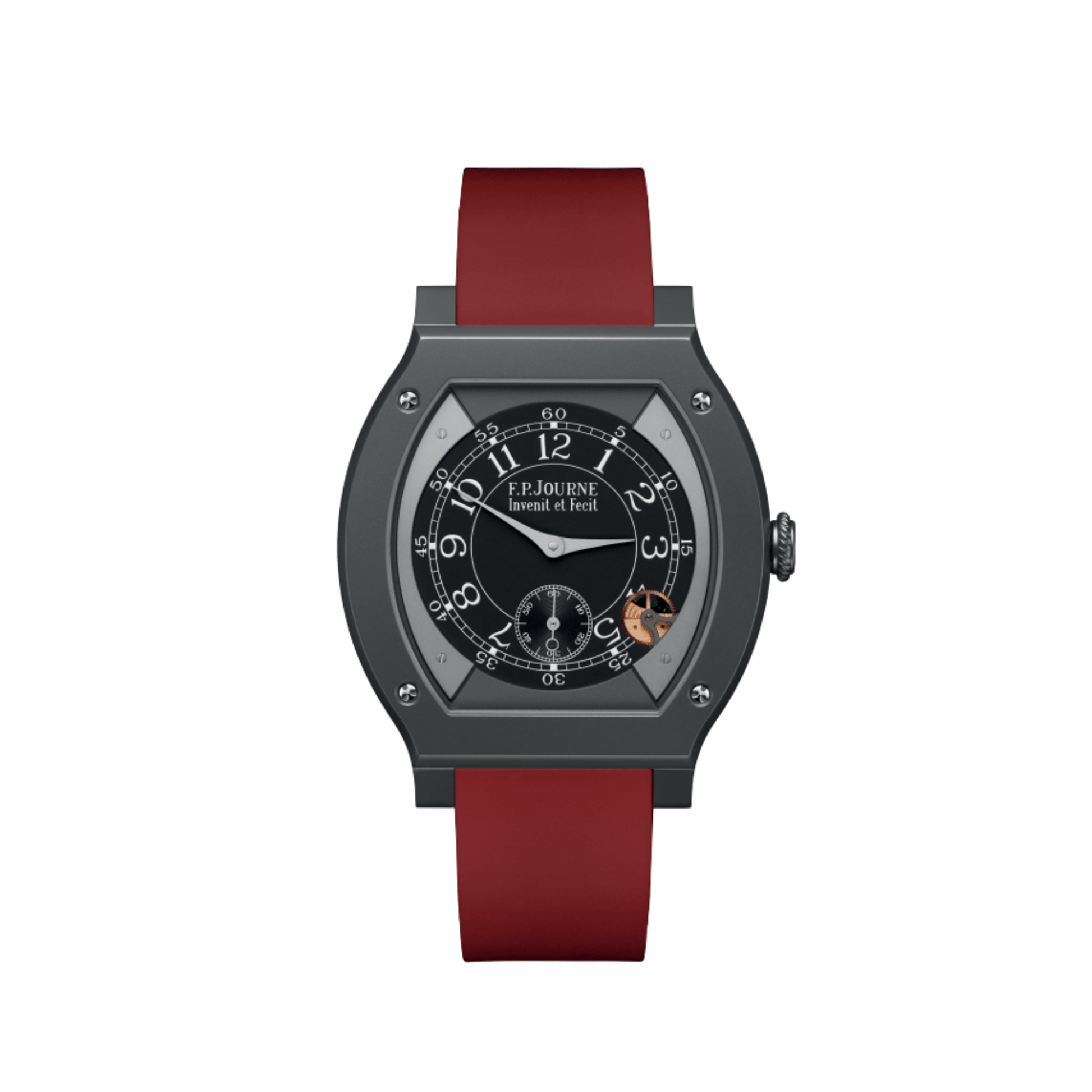 The F.P. Journe Élégante 48 Ref. ELHT reinterprets elegance through avant-garde design and cutting-edge technology. Its slender 48 × 40 mm Titalyt® “Flat Tortue” case, just 7.95 mm thick, delivers lightweight comfort balanced with architectural presence. Inside, the hypnotic black luminescent dial glows vividly in dim light, framed by steel-screwed outer elements and highlighted with slender blued-steel hands—a modern expression of haute horlogerie minimalism.