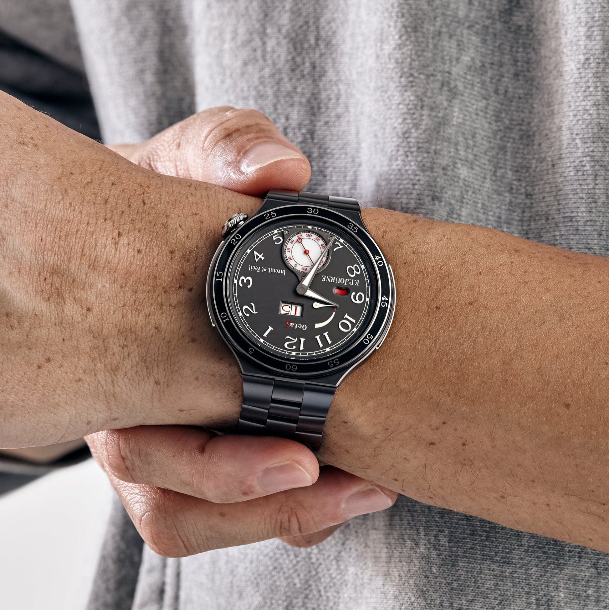 The F.P. Journe Linesport Octa Sport Automatique Reserve is a stunningly lightweight yet mechanically sophisticated timepiece. Its titanium case and bracelet offer exceptional durability while maintaining a remarkably low weight, making it comfortable to wear both on and off the wrist. The dark, textured dial adds a sporty yet refined touch, with bold Arabic numerals and contrasting luminous hands ensuring excellent legibility.