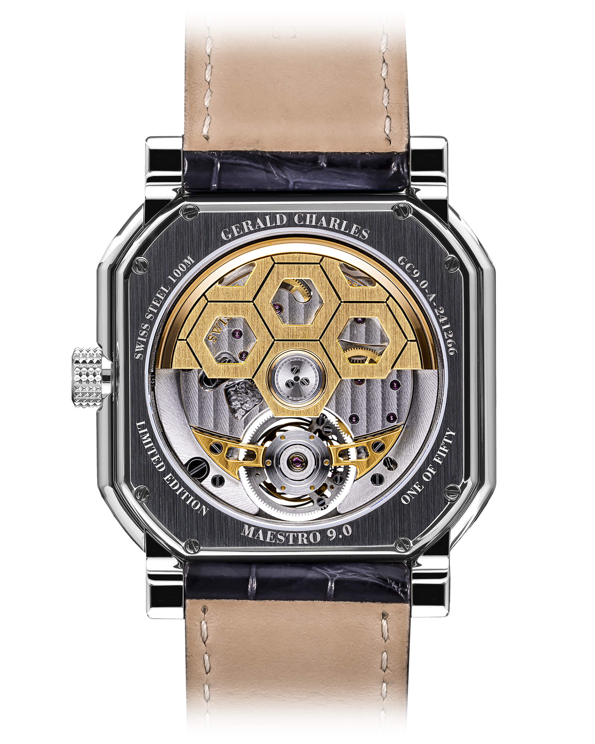 Experience the LIMITED EDITION OF 50 PIECES Maestro 9.0 Roman Tourbillon, a celebration of the captivating Roman architecture and art that inspired the iconic Maestro case. The dial's roman numerals further highlight the timeless beauty of this masterpiece.