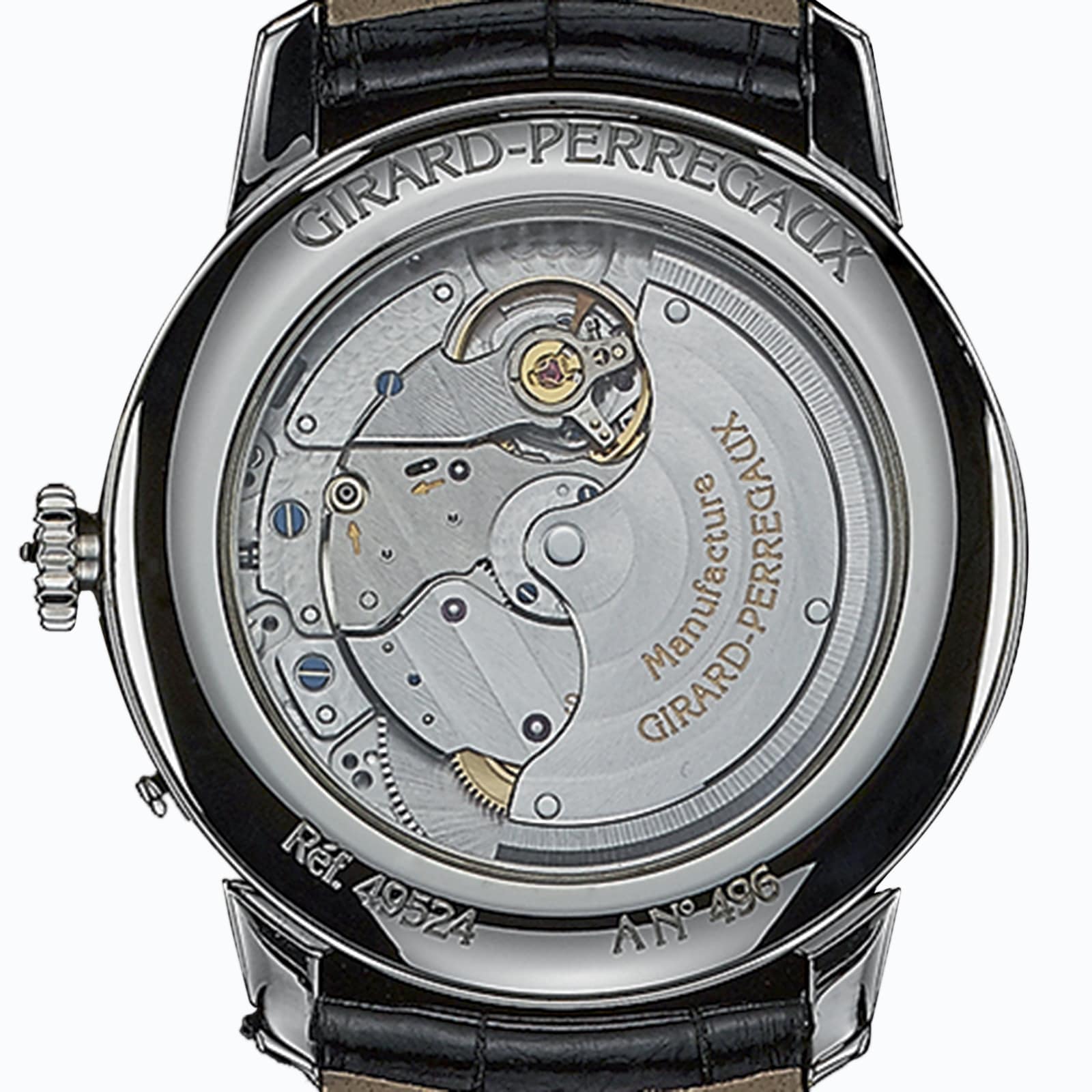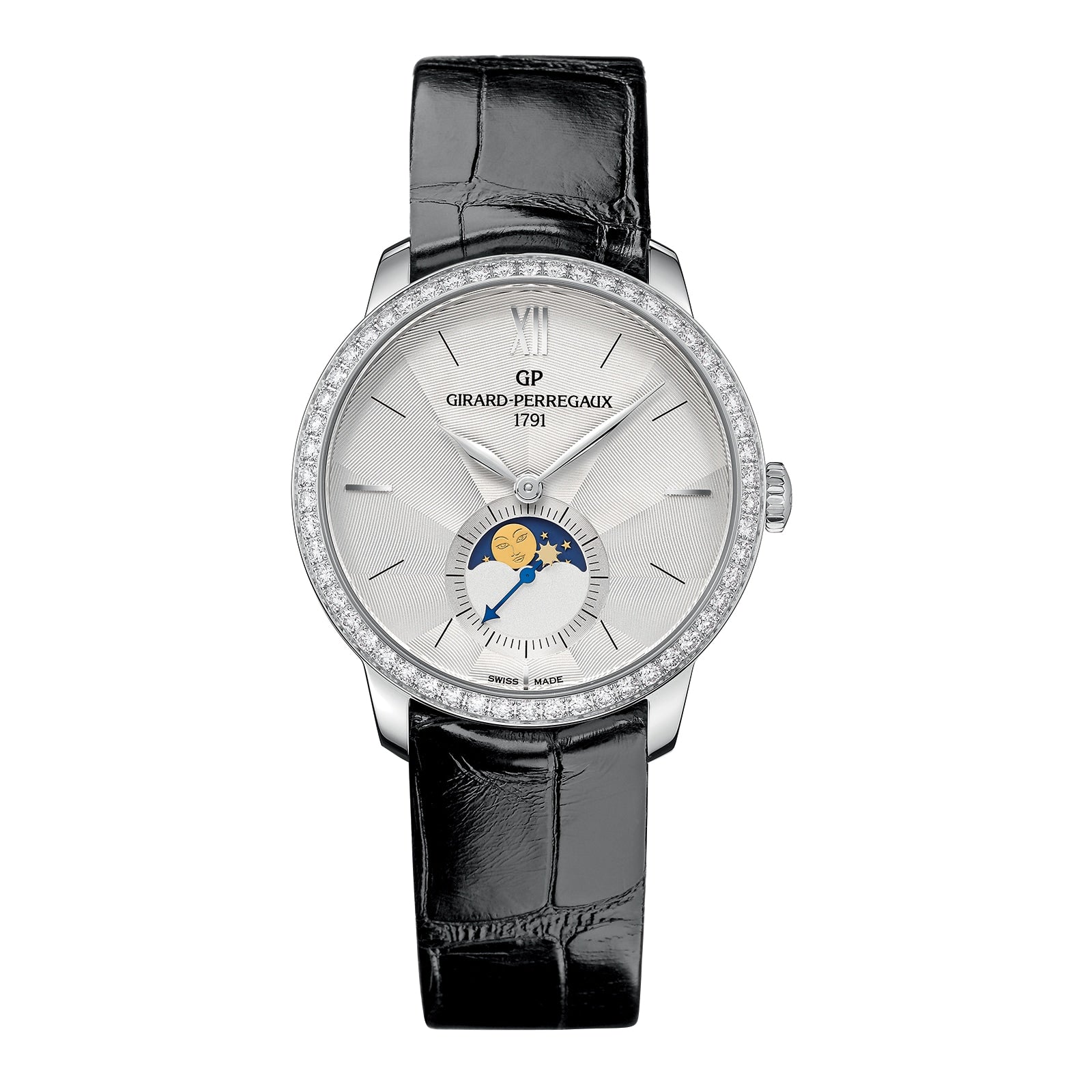 1966 – A timeless icon Honouring the brand’s award-winning technical advances in chronometry Gently hand-polished, flinquè silver dial A charming moon phase indicator adds a touch of personality Powered by the reliable in-house manufactured calibre GP0330 movement A TIMELESS ICON Paying tribute to Leonardo da Vinci’s artistic philosophy “simplicity is the ultimate sophistication”, the 1966 collection offers innovative, contemporary reiterations of classic designs inspired by the 1960s. Honouring the award-winning technical advances in chronometry the brand achieved in this iconic decade, including the Neuchâtel Observatory Centenary Prize, the 1966 models are incredibly versatile, ranging from elegant dress watches to sportier, dual time designs. CLASSIC DESIGN Staying loyal to the brand’s innate codes of elegance, at the heart of this breath-taking timepiece sits a gently hand-polished, flinquè silver dial, complete with Roman numerals at 12 o’clock, polished baton hour markers, and leaf-shaped hour and minute hands. A small, blued steel second hand with a delicate sun-shaped counterweight dances gracefully around the moon phase indicator, which depicts the movement of the moon across the magical night sky. A discreet face on the golden moon and a bezel set with 54 brilliant cut diamonds add further touches of flawless femininity, while a black patent alligator leather strap ensures a sophisticated silhouette. Paying homage to the manufacture’s commitment to watchmaking excellence, this wonderful model is powered by the reliable in-house calibre GP0330 movement, featuring 237 components. The 36mm case is crafted from stainless steel.