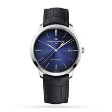1966 – A timeless icon Honouring the brand’s award-winning technical advances in chronometry Blue sunray dial complete with date display Presented in a slim 40mm stainless steel case Powered by the reliable in-house manufactured calibre GP0330 movement THE ULTIMATE SOPHISTICATION Paying tribute to Leonardo da Vinci’s artistic philosophy “simplicity is the ultimate sophistication”, the 1966 collection offers innovative, contemporary reiterations of classic designs inspired by the 1960s. Honouring the award-winning technical advances in chronometry the brand achieved in this iconic decade, including the Neuchâtel Observatory Centenary Prize, the 1966 models are incredibly versatile, ranging from elegant dress watches to sportier, dual time designs. ATTENTION TO DETAIL Classic in terms of functions and lines, this well-balanced timepiece is beautifully presented in a polished, round 40mm stainless steel case, softly domed with curved lines. Staying loyal to the brand’s innate codes of elegance, at the heart of this breath- taking timepiece sits a deep blue sunray dial, reminiscent of the night sky. The dial is equipped with baton hour markers, leaf- shaped hour and minute hands, and a discreet yet highly legible date display. The black alligator leather strap is perfectly integrated to the case, ensuring maximum comfort and a sophisticated silhouette. Reinforcing the manufacturer’s commitment to watchmaking excellence, this wonderful model is powered by the reliable in-house manufactured calibre GP0330 movement, crafted from 218 components. Decorated with Côtes de Genève, the oscillating weight can be viewed through the transparent case back.
