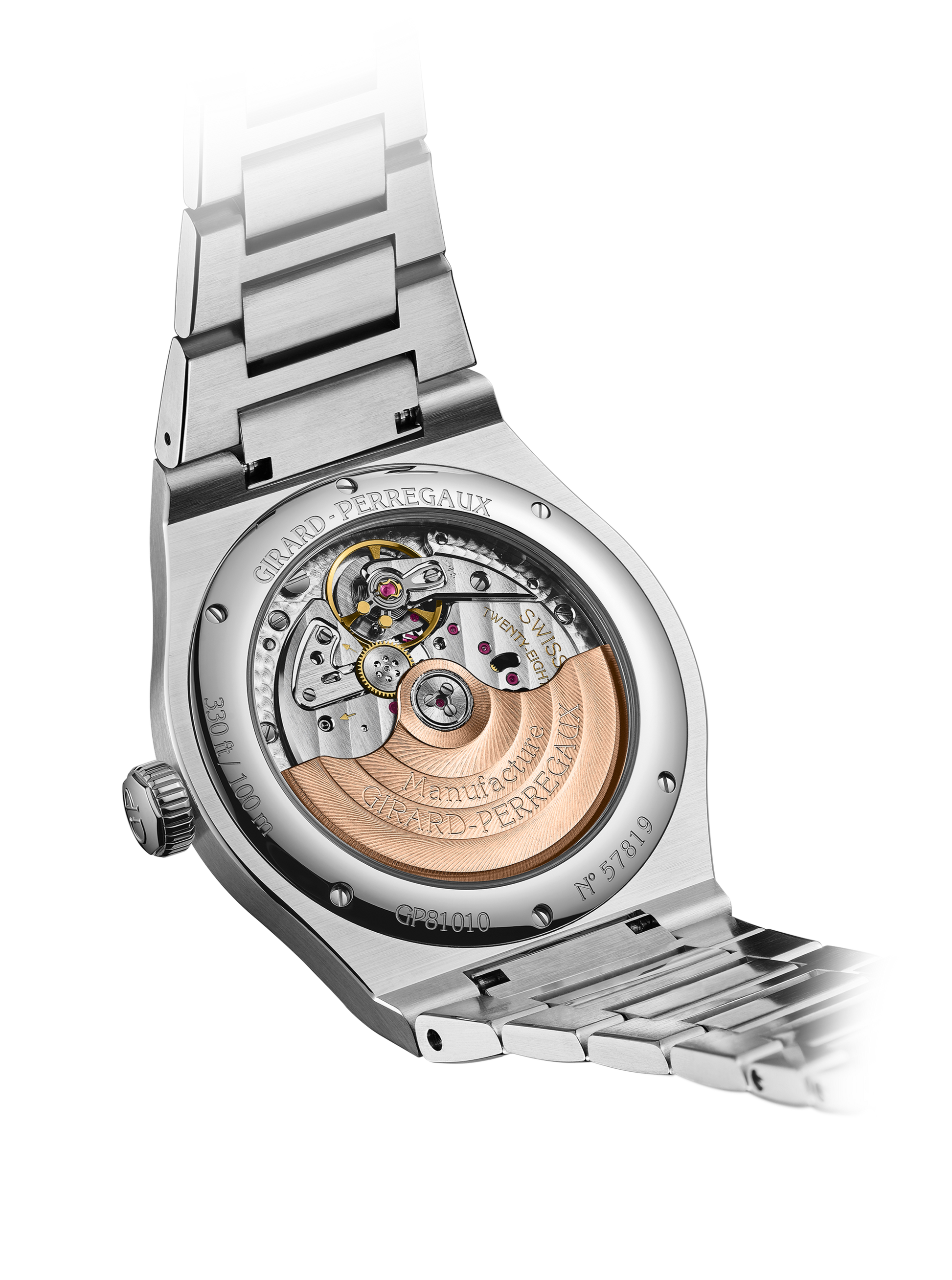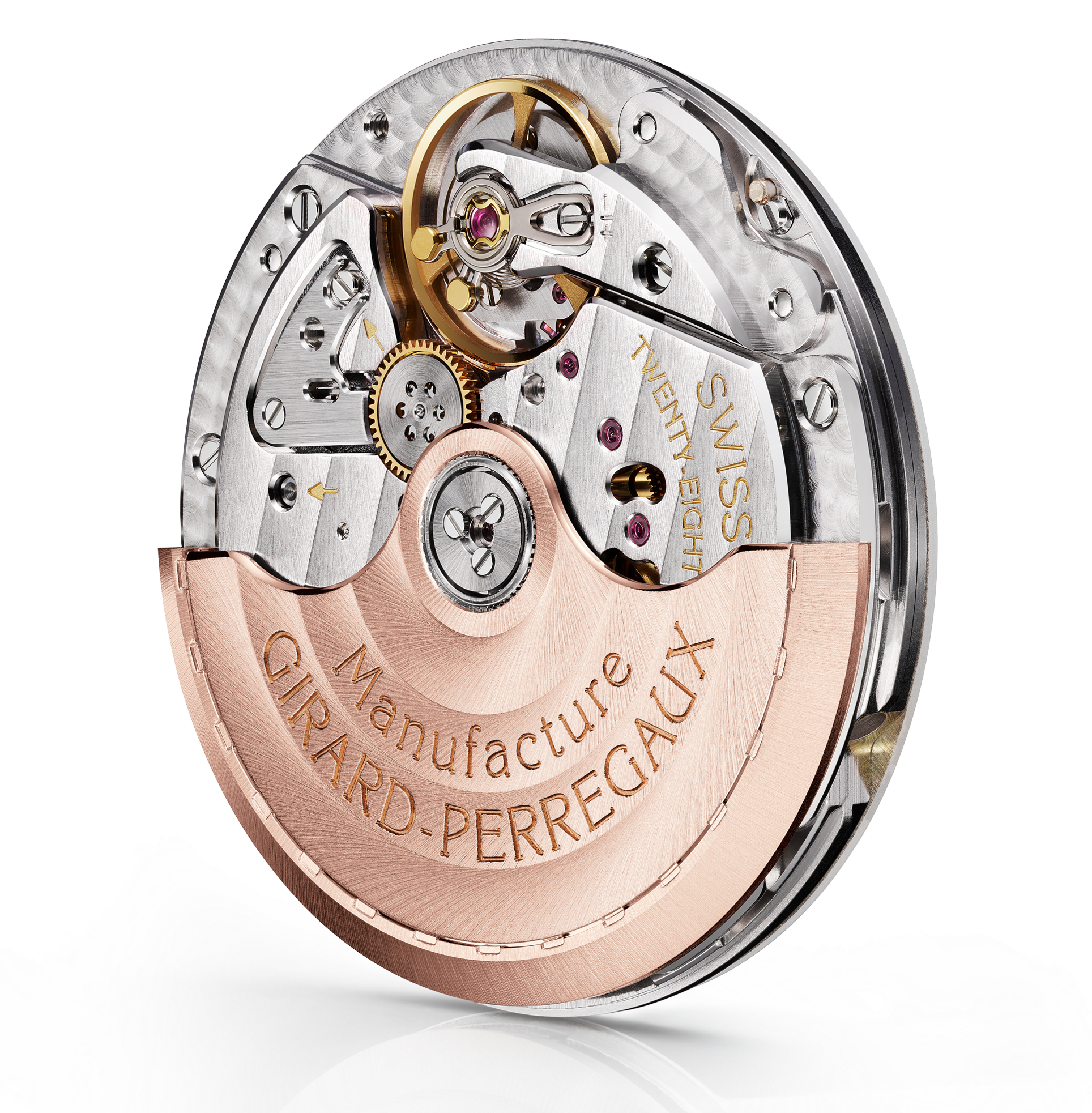 At the heart of this new timepiece lies a dial of exceptional depth and brilliance. Crafted in-house in the Sowind Group, to which Girard-Perregaux belongs, the artisanal process for the demanding Grand Feu enamel technique, to which this dial owes its beauty, underscores Girard-Perregaux’s commitment to craftsmanship of the highest order. Entirely designed, produced, assembled and adjusted by Girard-Perregaux, while endowed with traditional and meticulous finishes, the calibre GP01800 is the spearhead of the Manufacture. The see-through case-back reveals the gold oscillating weight decorated with Côtes de Genève.