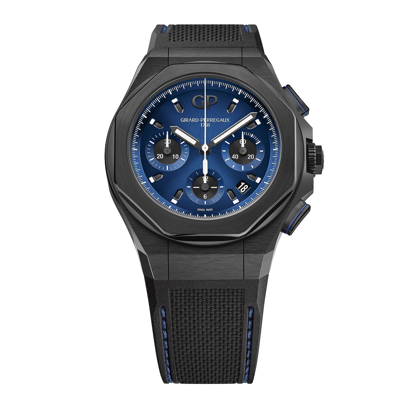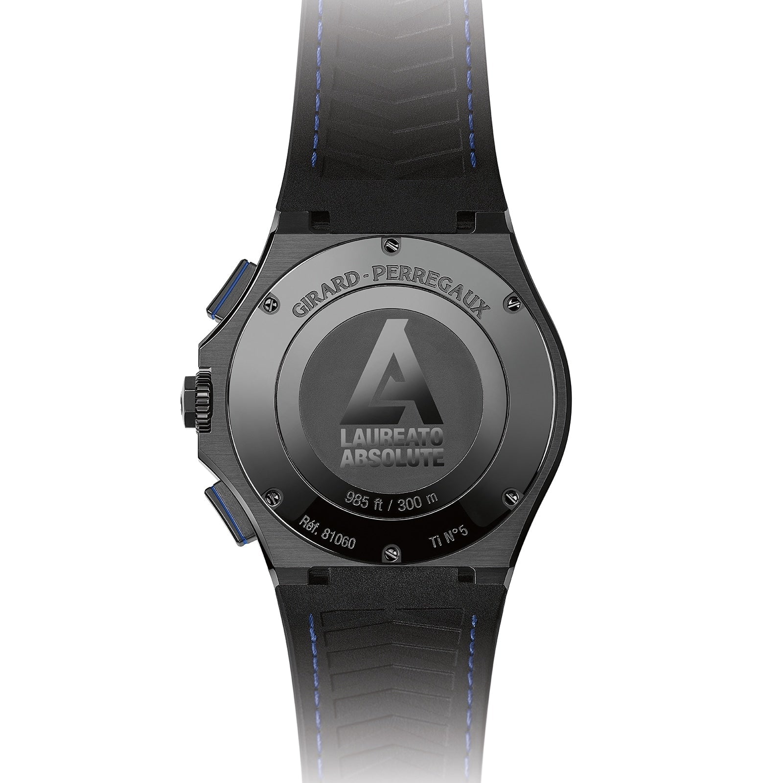 Laureato Absolute Chronograph –An absolute icon Blending aesthetics and functionality Presented in a lightweight 44mm black PVD- treated titanium case Framed by the collection’s iconic polished octagonal bezel Powered by the calibre GP03300 self-winding chronograph movement AN ABSOLUTE ICON First launched in 1975, the Laureato is a true gem amongst the brand’s iconic models, embracing sporty lines and classic elegance. Showcasing the collection at its sportiest and most contemporary, the latest models are truly uncompromising, offering a fascinating material spectrum – from bold, architectural steel and super-light titanium to classic pink gold and the radiant sparkle of brilliant cut diamonds. A commanding feature of the first Laureato, the iconic octagonal bezel remains a core part of this exemplary collection. URBAN EXPRESSION A strong presence on the wrist, this uncompromising chronograph model is presented in a 44mm black PVD-treated titanium case that is broad and bold yet lightweight. A new, fully integrated black rubber strap with contrasting blue stitching reinforces the urban-inspired sports design. The contemporary blue sunray dial features three chronograph sub-dials, a date display, and baton hour markers, with black and white accents complementing the overall styling. Power and precision come courtesy of the impeccably accurate calibre GP03300 self- winding chronograph movement, which drives two counter and small seconds dials, as well as the date display. A 46-hour power reserve and water resistance to 30 bar (300 metres) perfect this high-performance timepiece.
