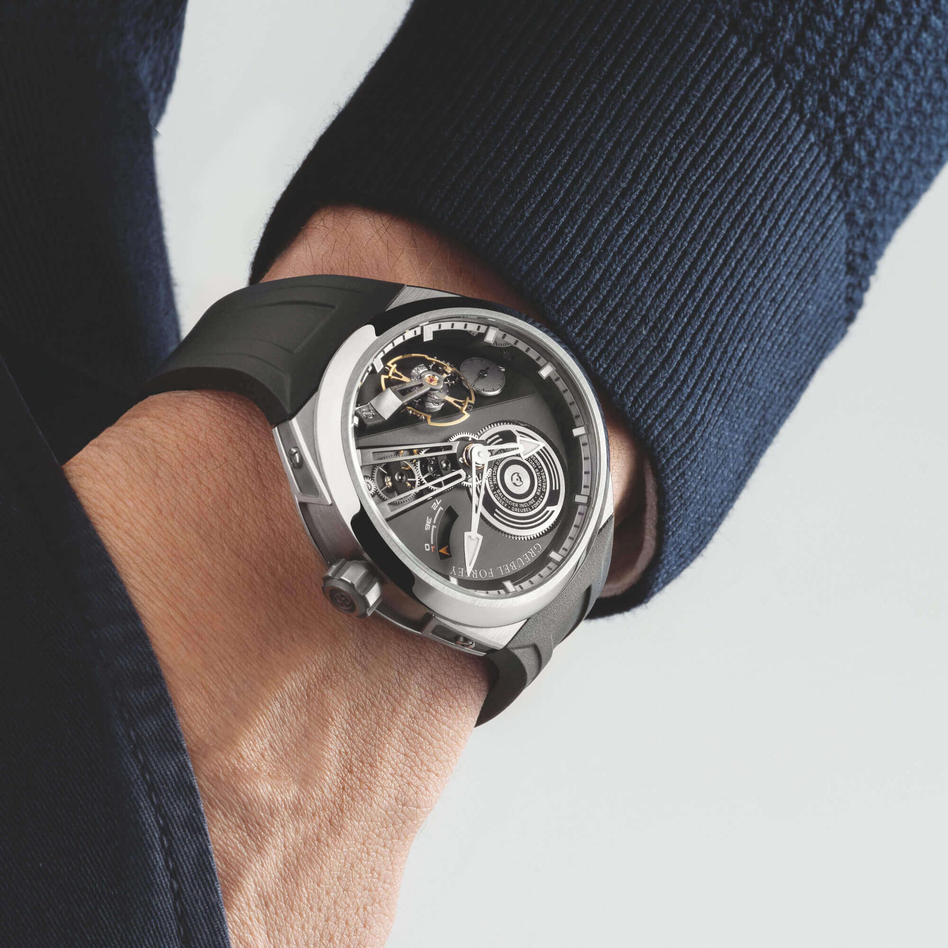 The new diameter of 41.5 mm has been specifically designed for carbon. It’s a radical change, immediately visible on the wrist. This timepiece is tighter, livelier, and even more modern. The very dark tone of the carbon reinforces the feeling of a very compact piece, while staying open to display the movement, complication and finishes.