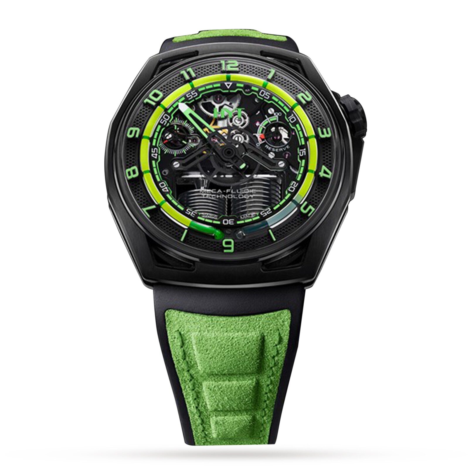 Symbol of a new launch, the Hastroid has been designed and conceived to meet new expectations. Its 48 mm diameter casing, with a total length of 52.3 mm and a 13.3 mm case thickness is shaped from the most modern or contemporary high-quality materials: titanium, titanium and carbon or an innovative alloy of stabilized bronze and carbon, a contact point between ancient times and the aspirations of the future.The coloured fluid it contains performs the function of indicating the retrograde hours. The components of the manual winding mechanical movement reveal themselves subtly through openwork workmanship at the back of the dial or plate. This calibre was designed by Eric Coudray, a well-known master in the field. Under his guidance, and with the assistance of the watchmaker Paul Clementy, Prix Gaïa award winner, and Arnaud Faivre, at the head of the Tec Group, the movement has developed a finer aesthetic and finish, with elegant satin finish or laser-treated or bead-blasted parts.