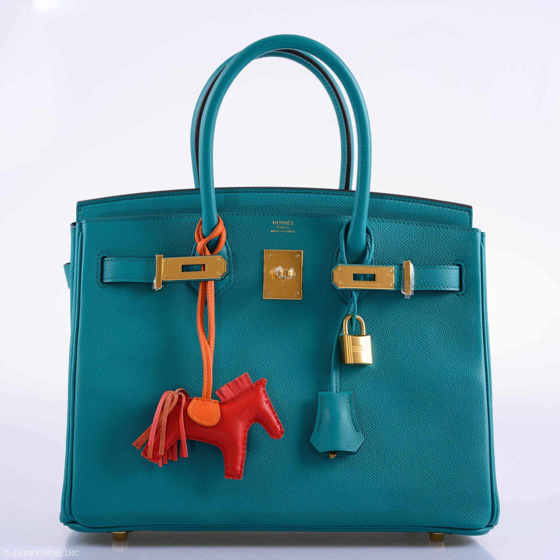 Peacock blue has long been associated with luxury. Inspired by the deep iridescence found in the feathers of these extravagant and exotic birds, Paon, as it is called in French is equally rich, hovering between green and blue, and beautiful matched with warm gold hardware. This 30cm Birkin in Epsom leather shows off the color exceptionally. Whistler’s Peacock Room is transformed here into the iconic Birkin, art, history, nature and luxury combined into one.