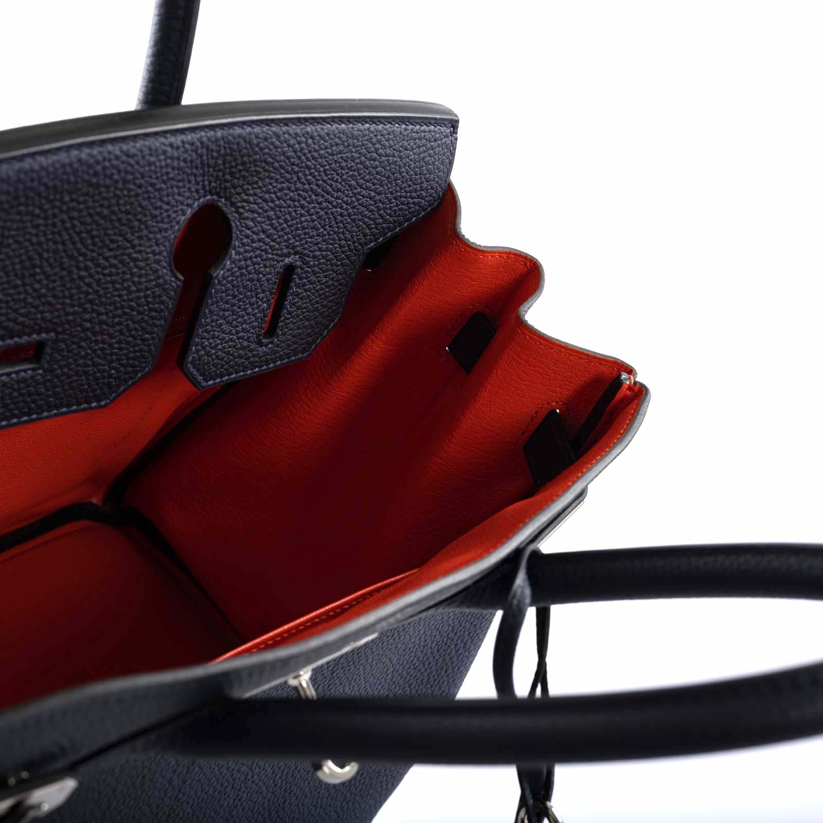 Hermès Birkin 30 Verso Blue Nuit and Orange Poppy Togo Palladium Hardware