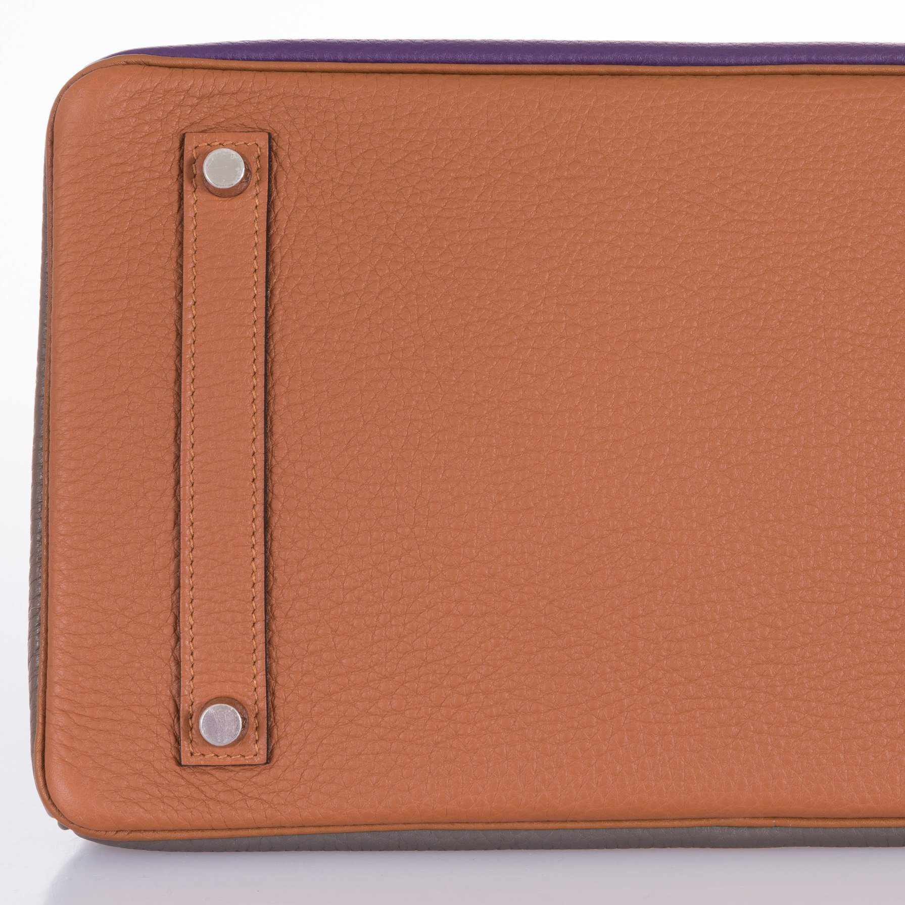 Limited Edition Arlequin (Harlequin) Hermès 35cm Birkin, no longer produced. Exotic with ultra violet, etain, bleu lin, bleu abscur, etoupe and gold (color leather - not hardware). This unique bag is will stir any collectors imagination.