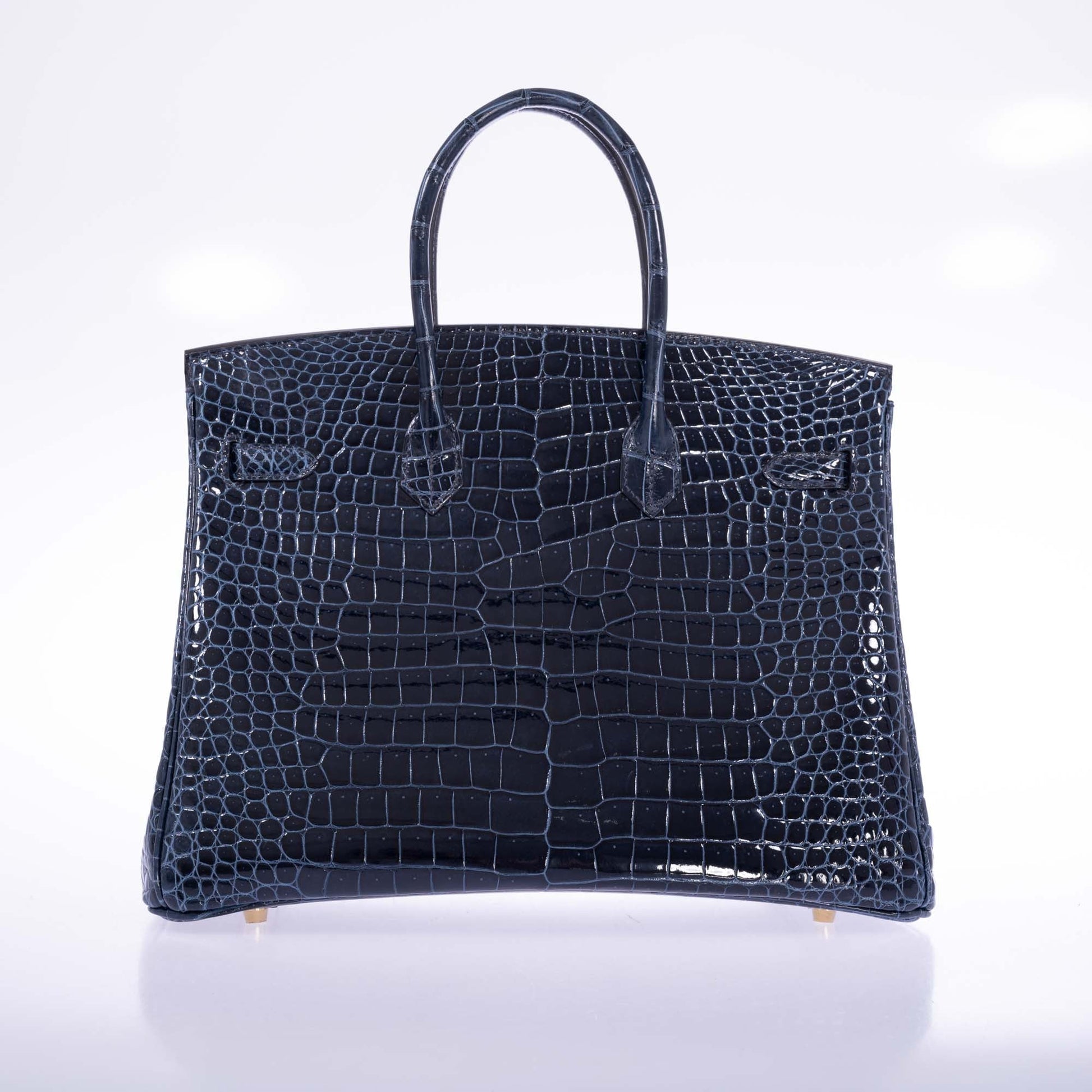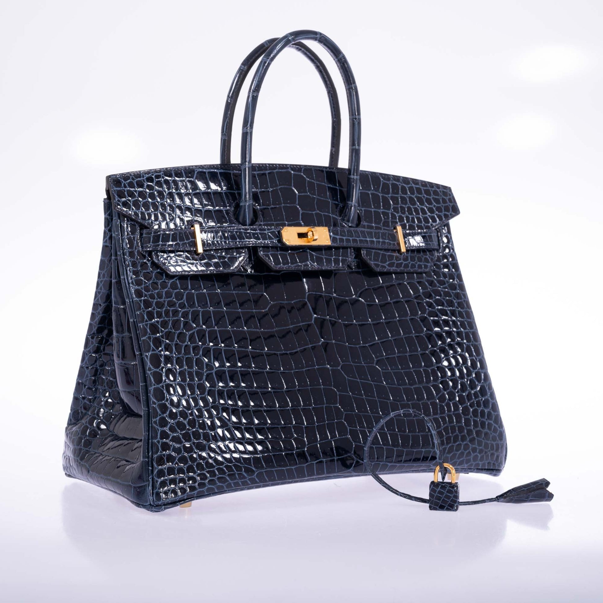 Hermès Birkin 35 Bleu Baltique Shiny Porosus Crocodile Gold Hardware