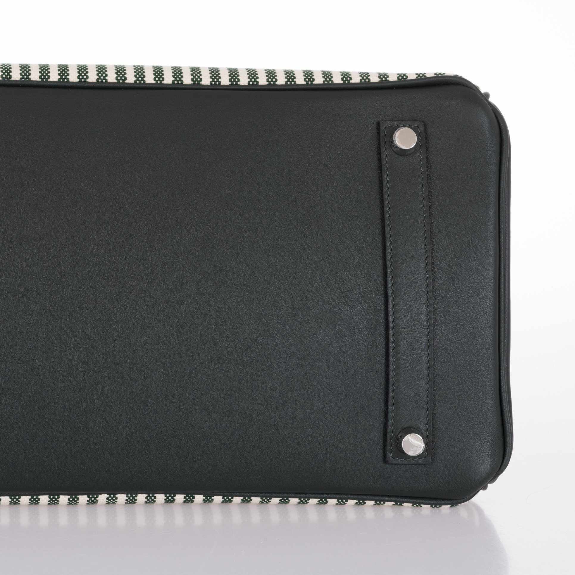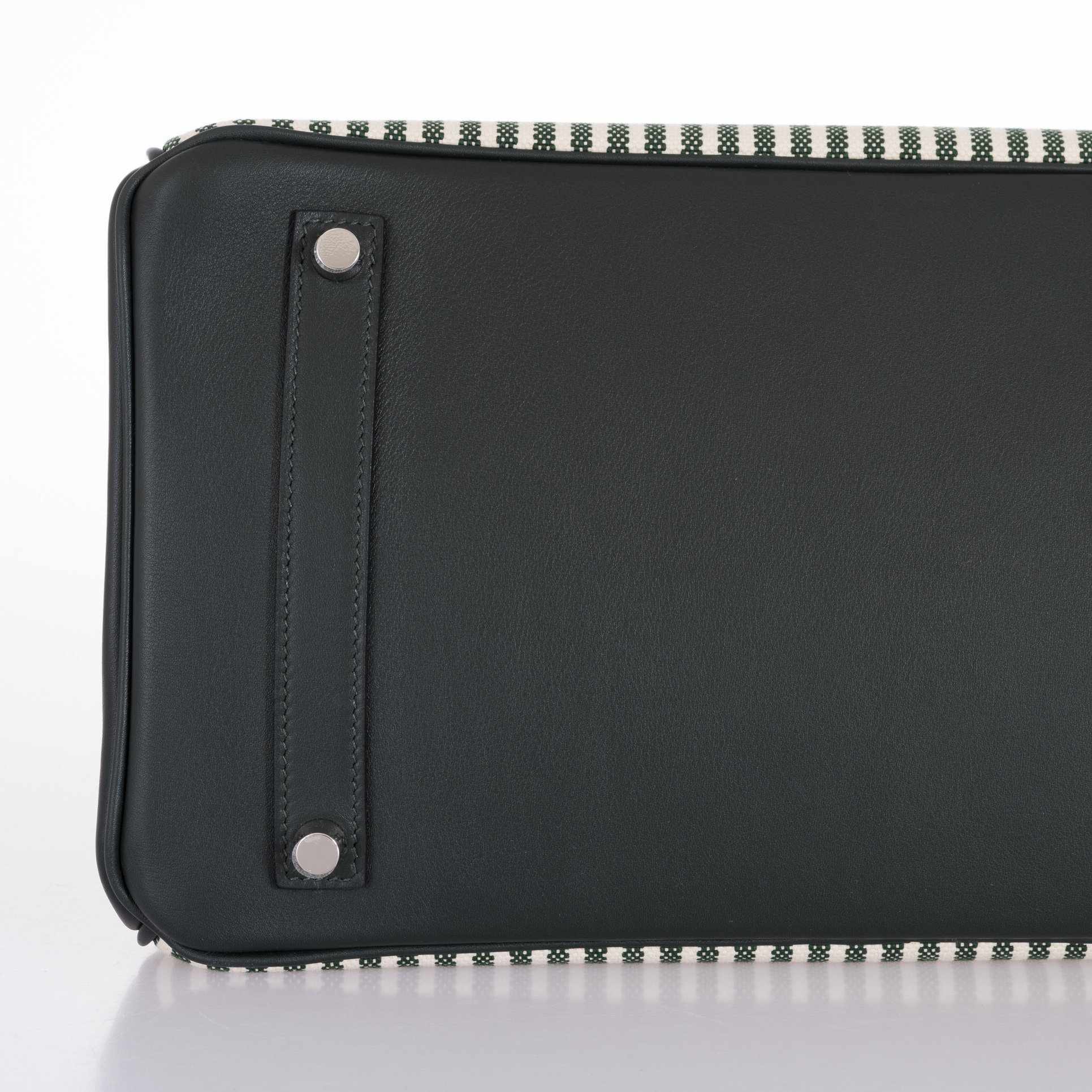 Hermès Birkin 35 Ecru Vert Anglais Toile Riga Swift Palladium Hardware