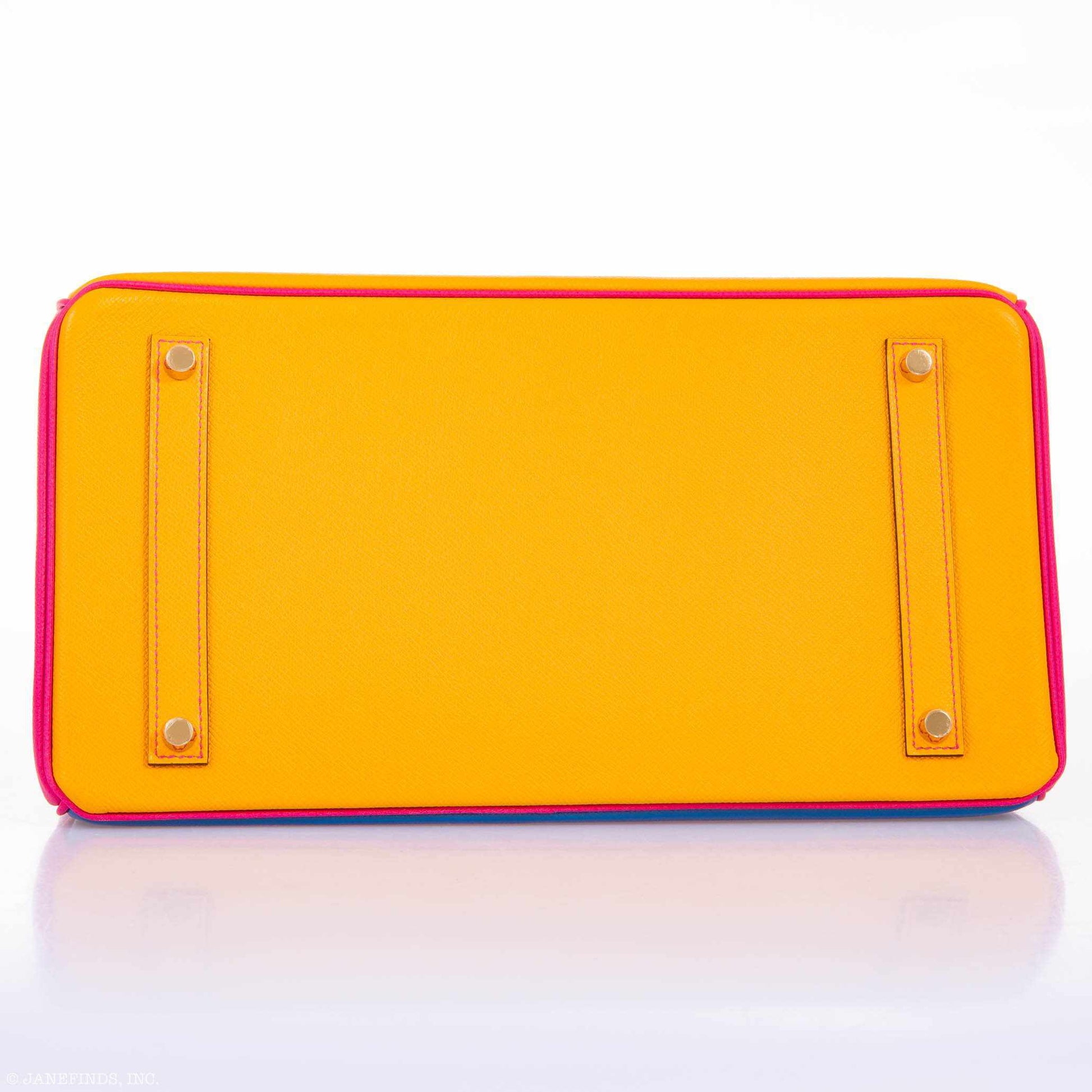 One of the most striking HSS custom order bags we have ever come across. Birkin 35cm HSS Juane D'Or, Mykonos Blue, Rose Tyrien Epsom Leather with Gold Hardware, very special custom order. Don't miss this one, a great addition to any collection!