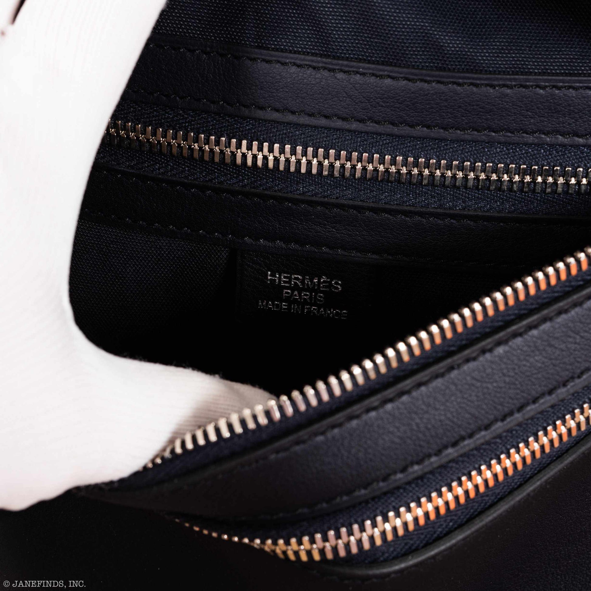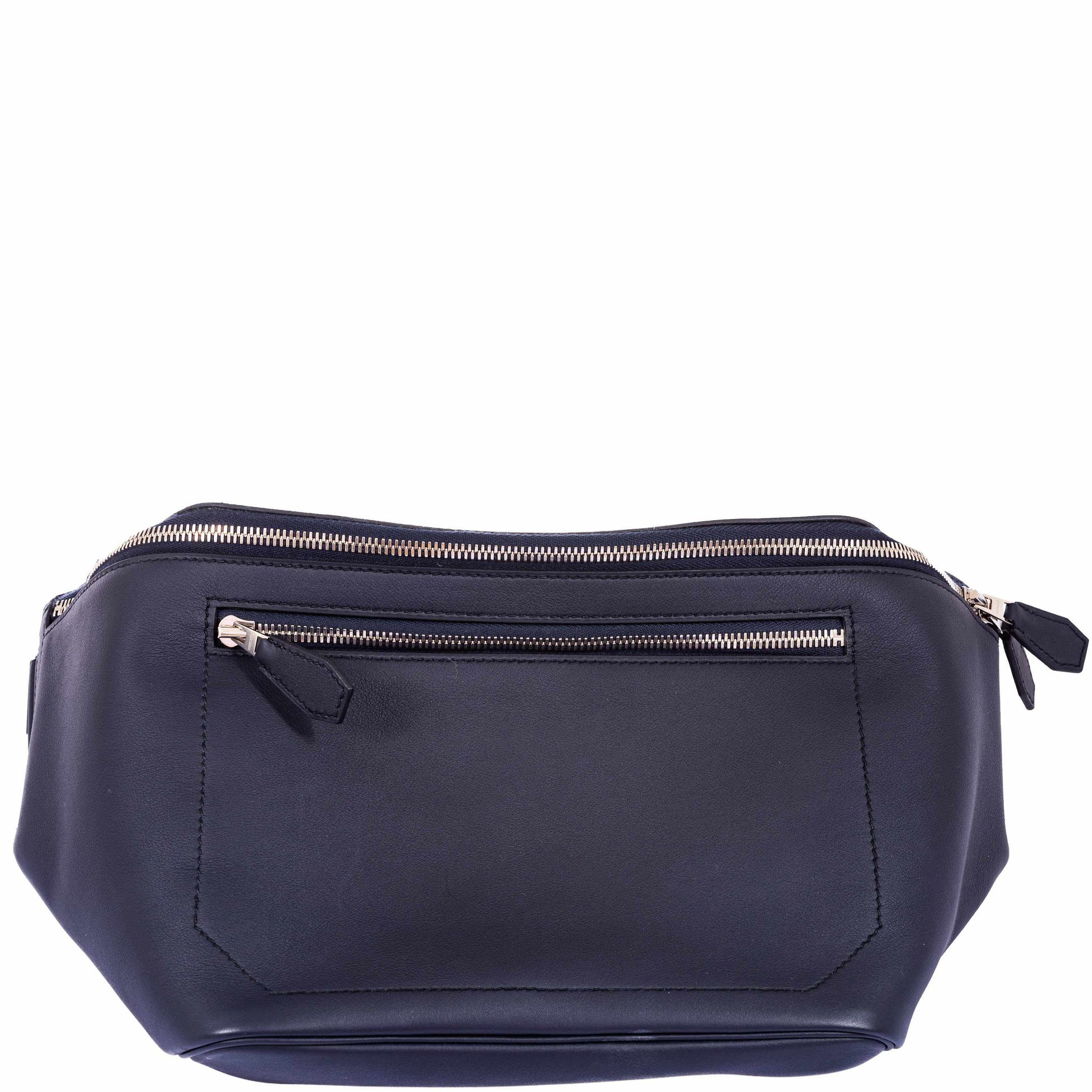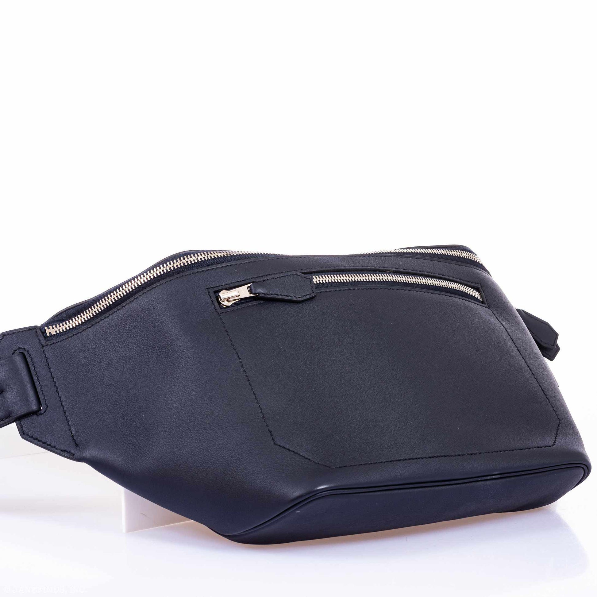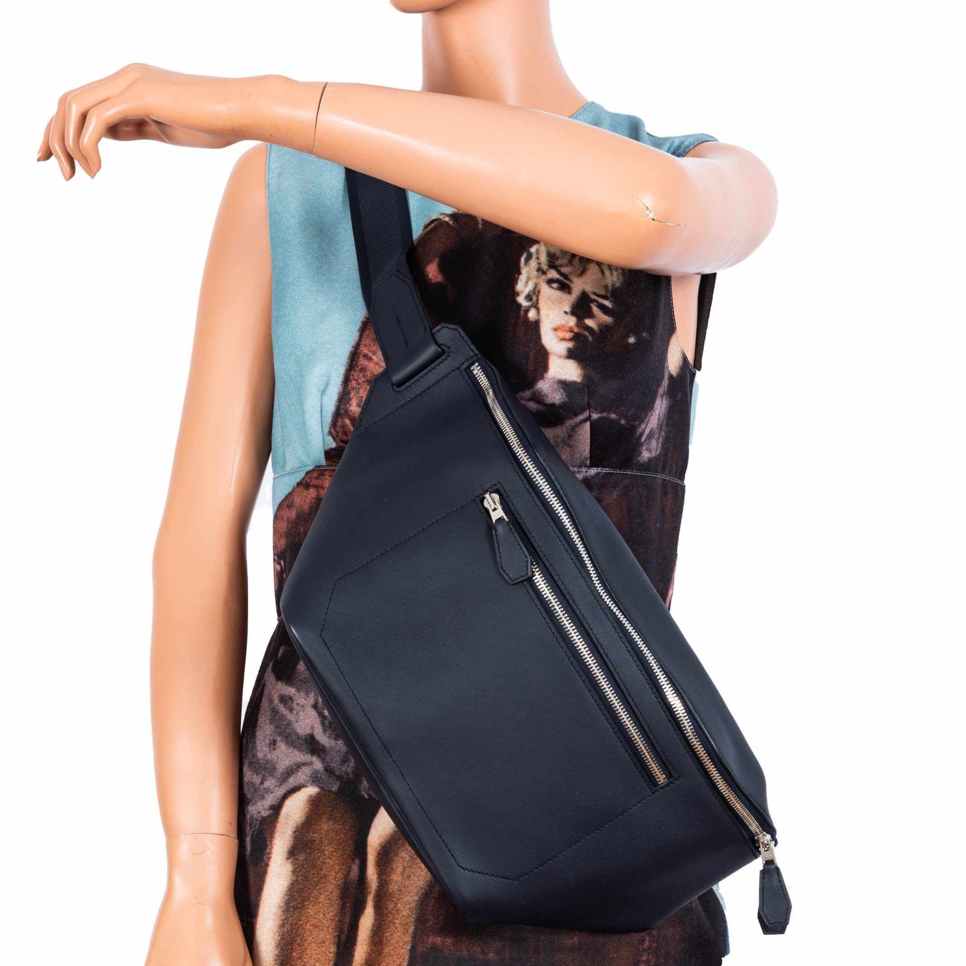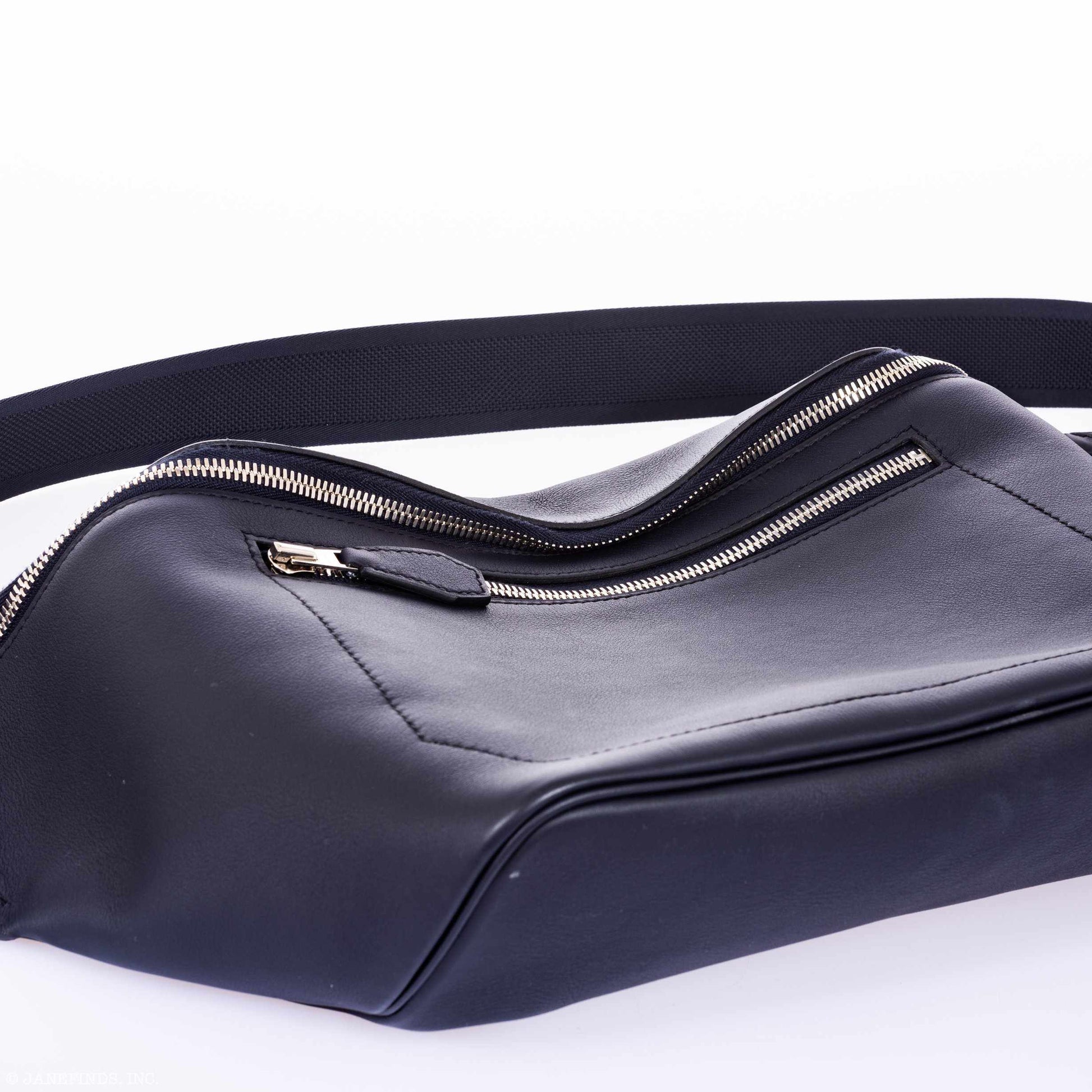 Limited Edition Hermès Sac Cityslide Cross PM Unisex rare Taurillon Cristobal Leather with Sangle Twill strap. Versatile waist bag in Blue indigo. Adjustable strap allows the bag to be worn cross body or around waist. Comes with sleeper, Hermès box.
