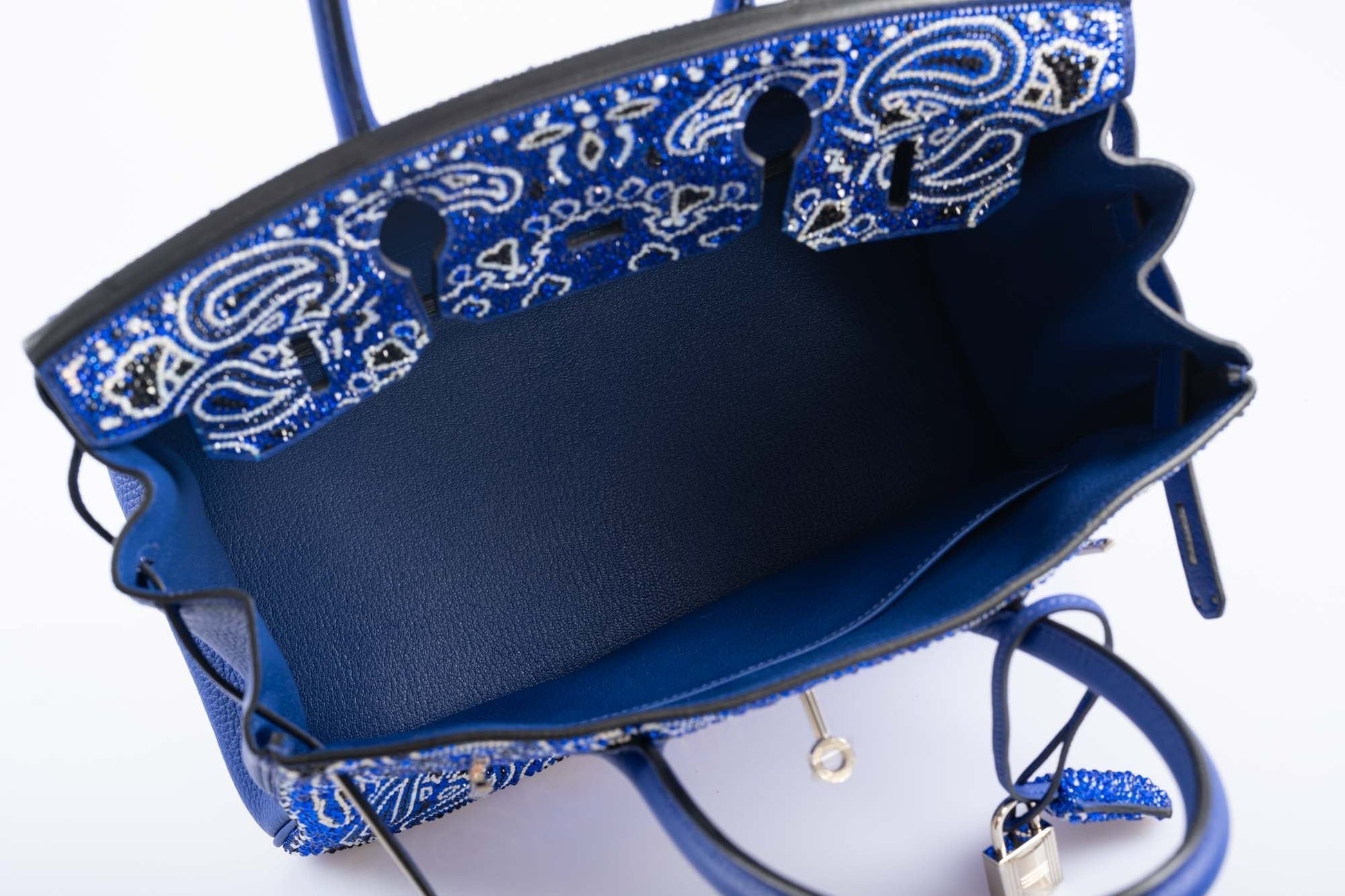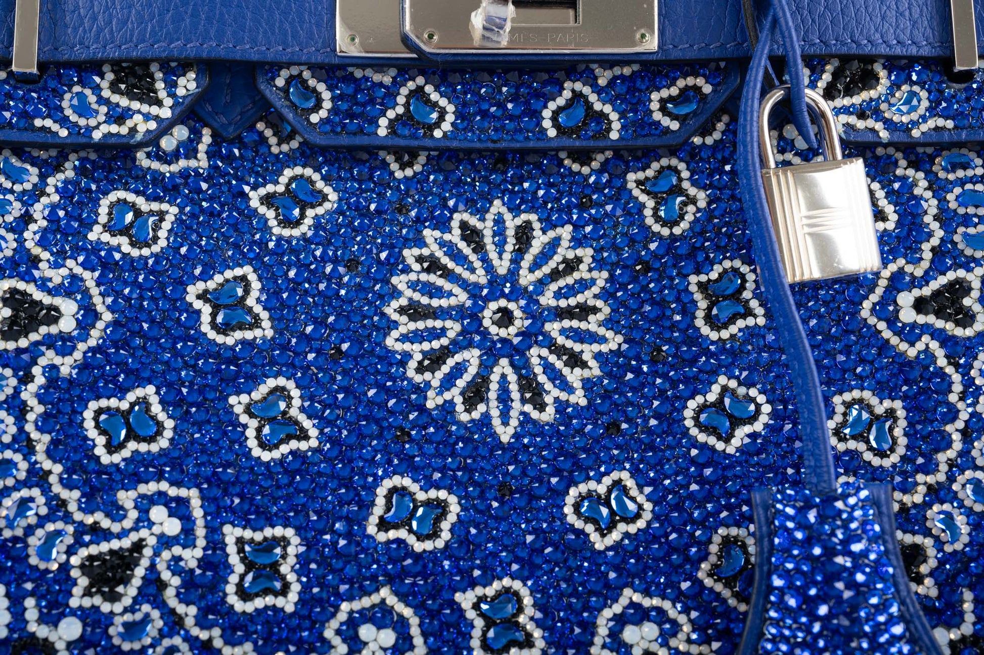 Hermès Custom Swarovski Crystal Cowgirl Bandana Birkin 30 Blue Togo Palladium Hardware