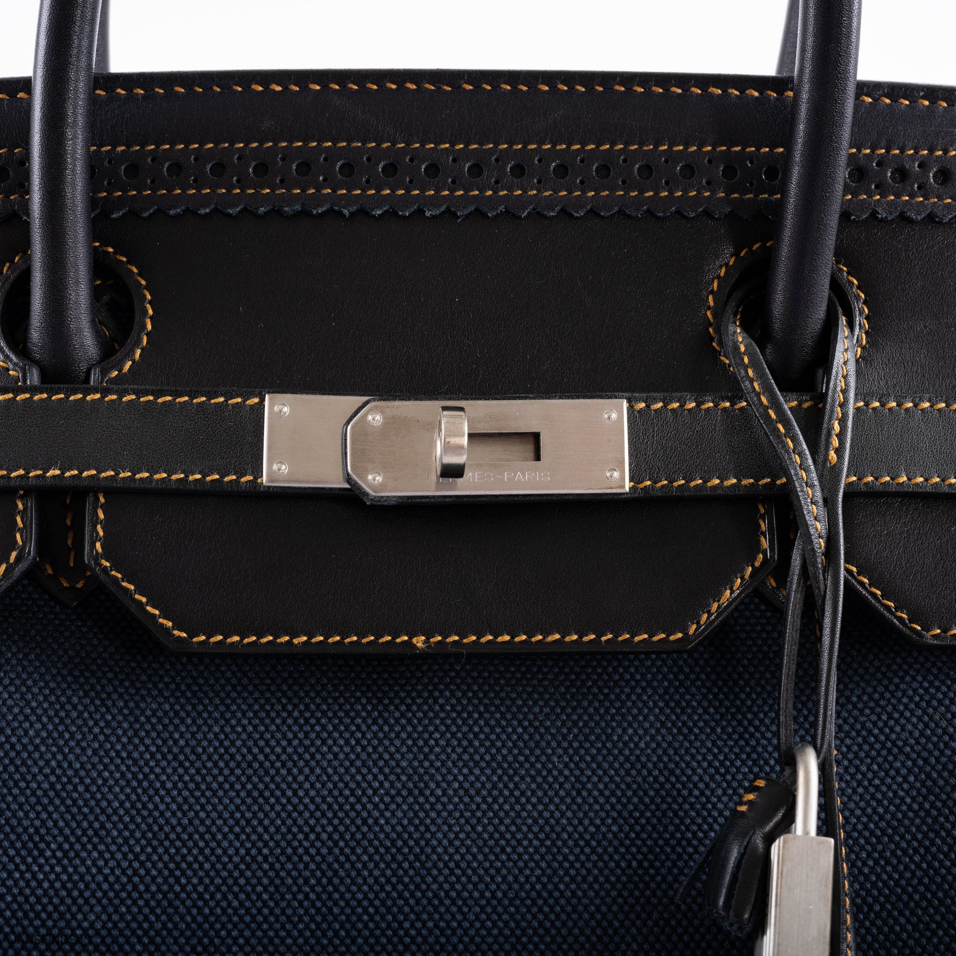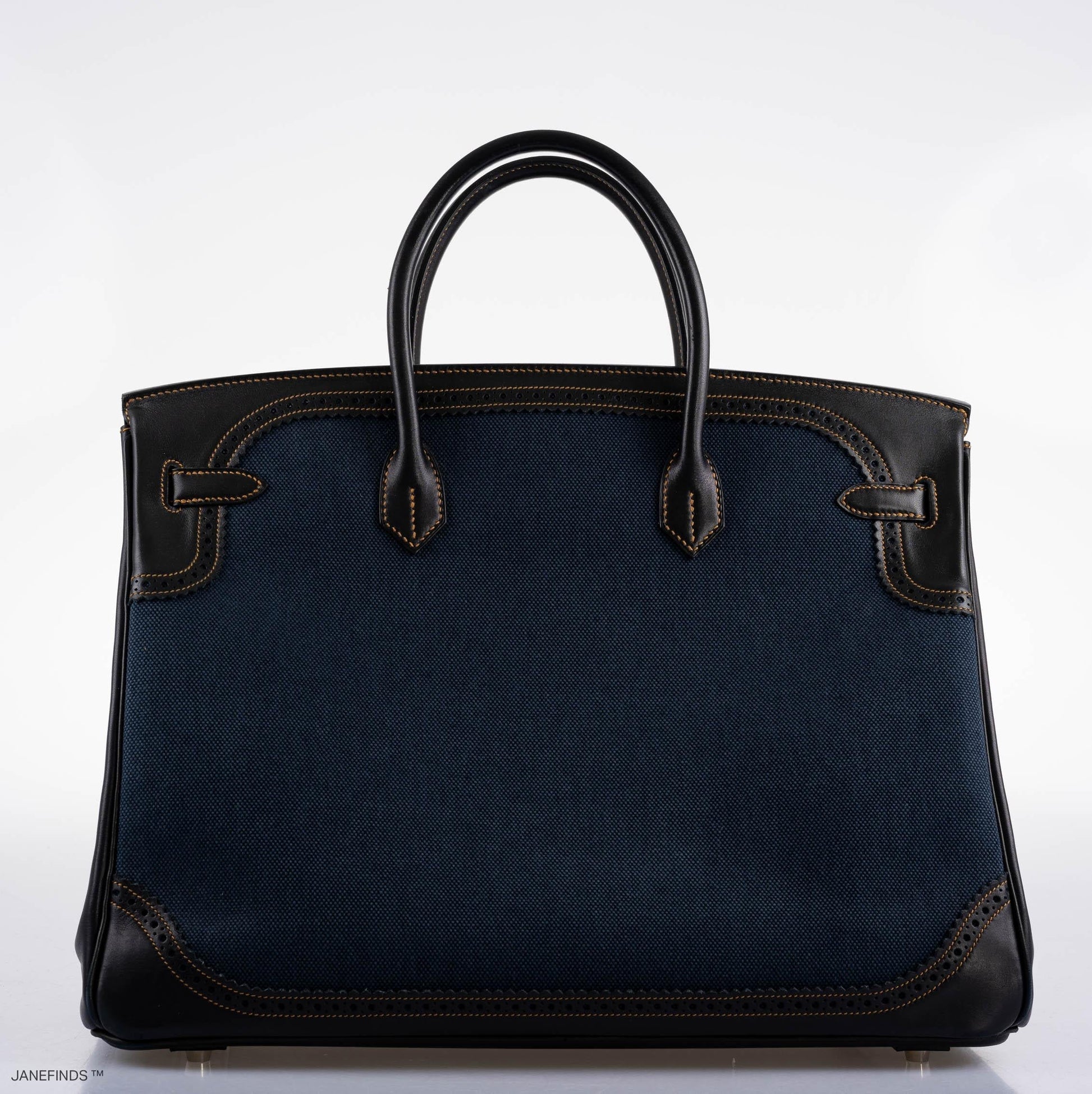 Hermès Ghillies Birkin 40 Indigo Denim and Black Tadelakt Brushed Palladium Hardware