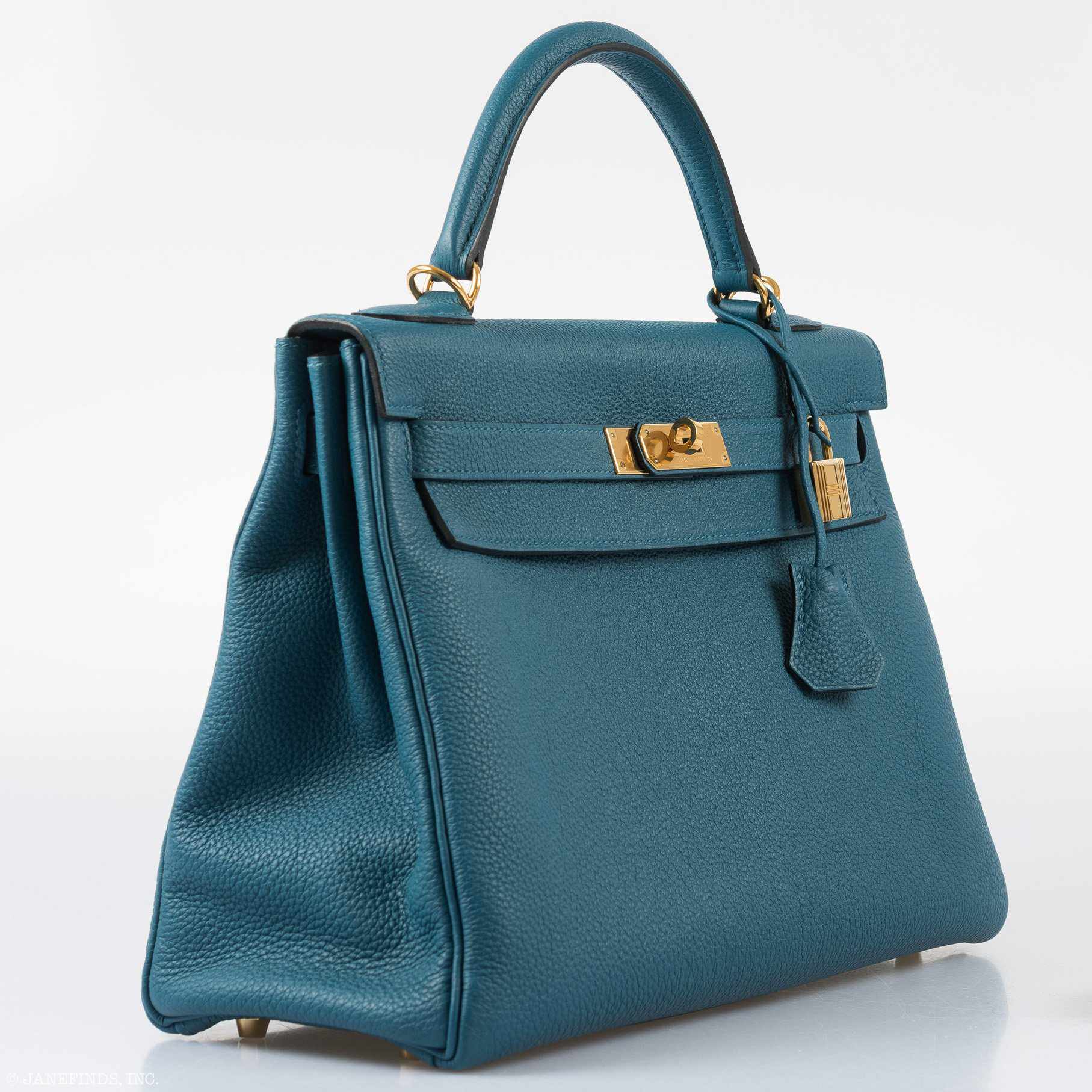 Hermès Kelly 32 Retourne Blue Cobalt Togo Gold Hardware