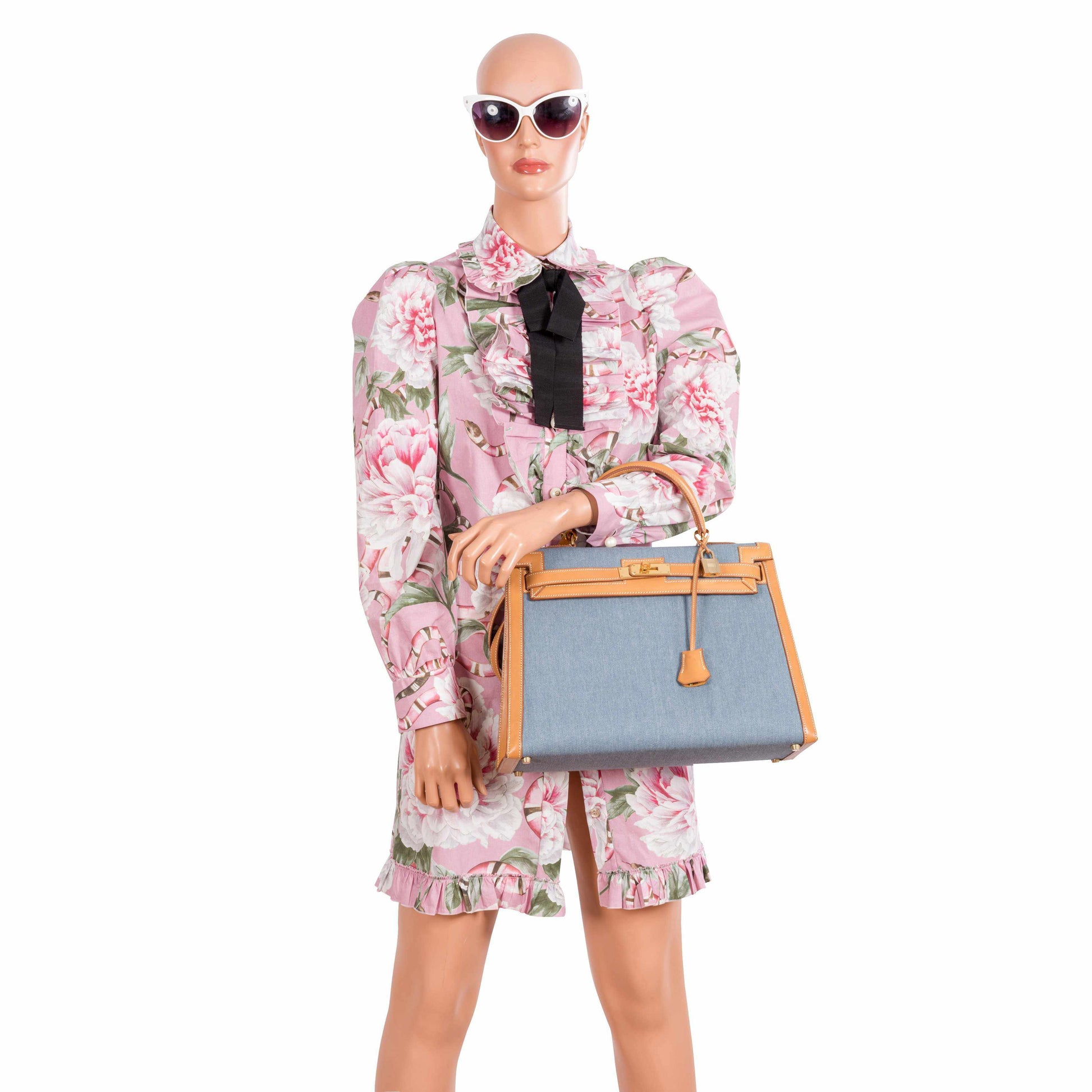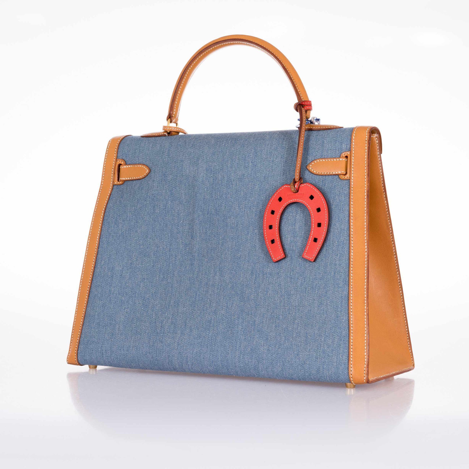 Hermès Kelly 35 Blue Denim With Barenia Gold Hardware Rare Limited