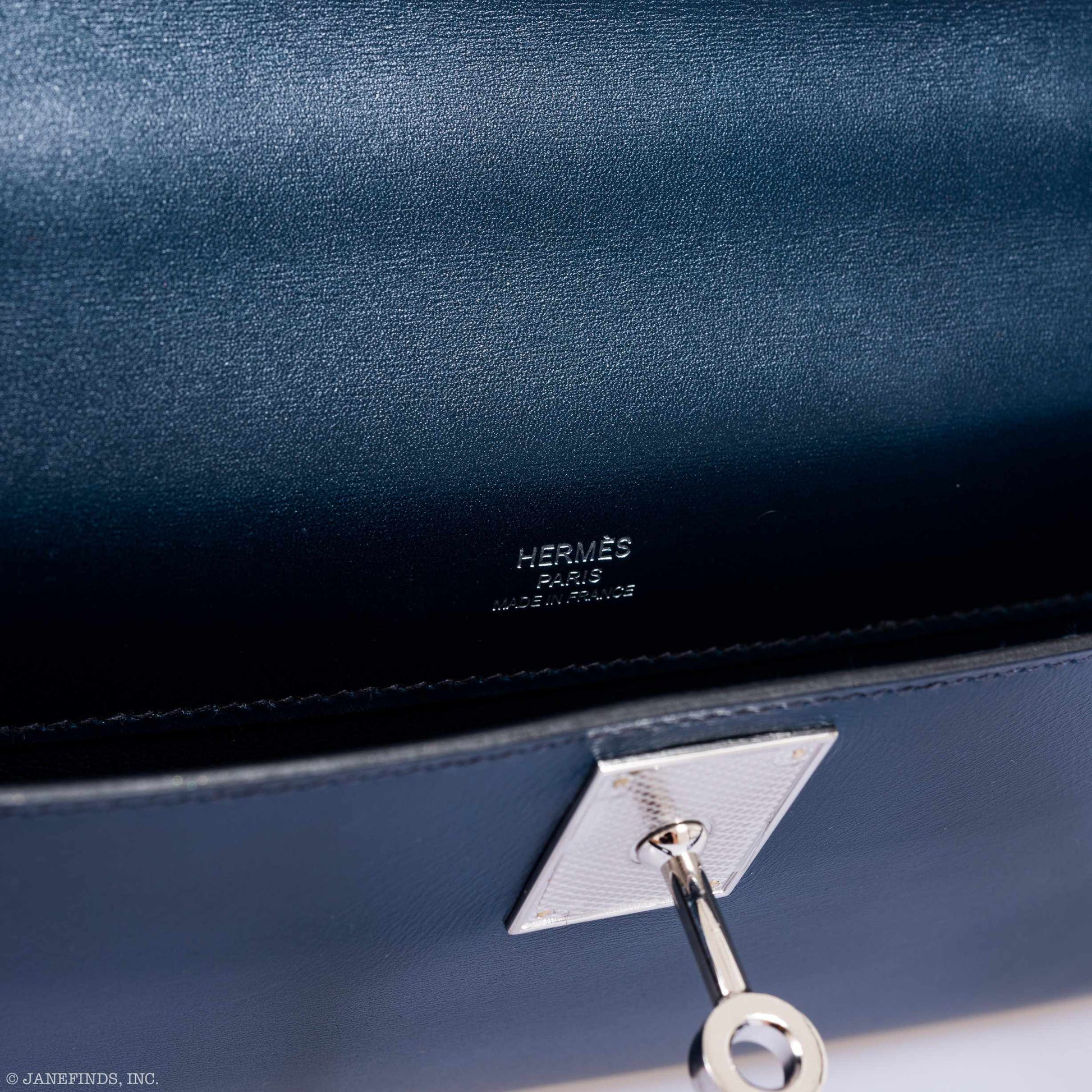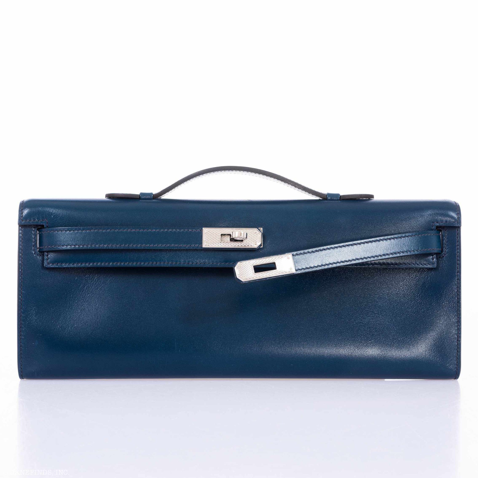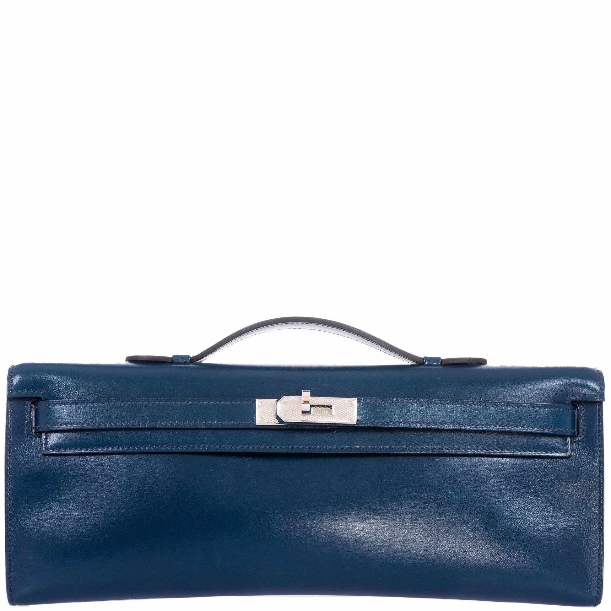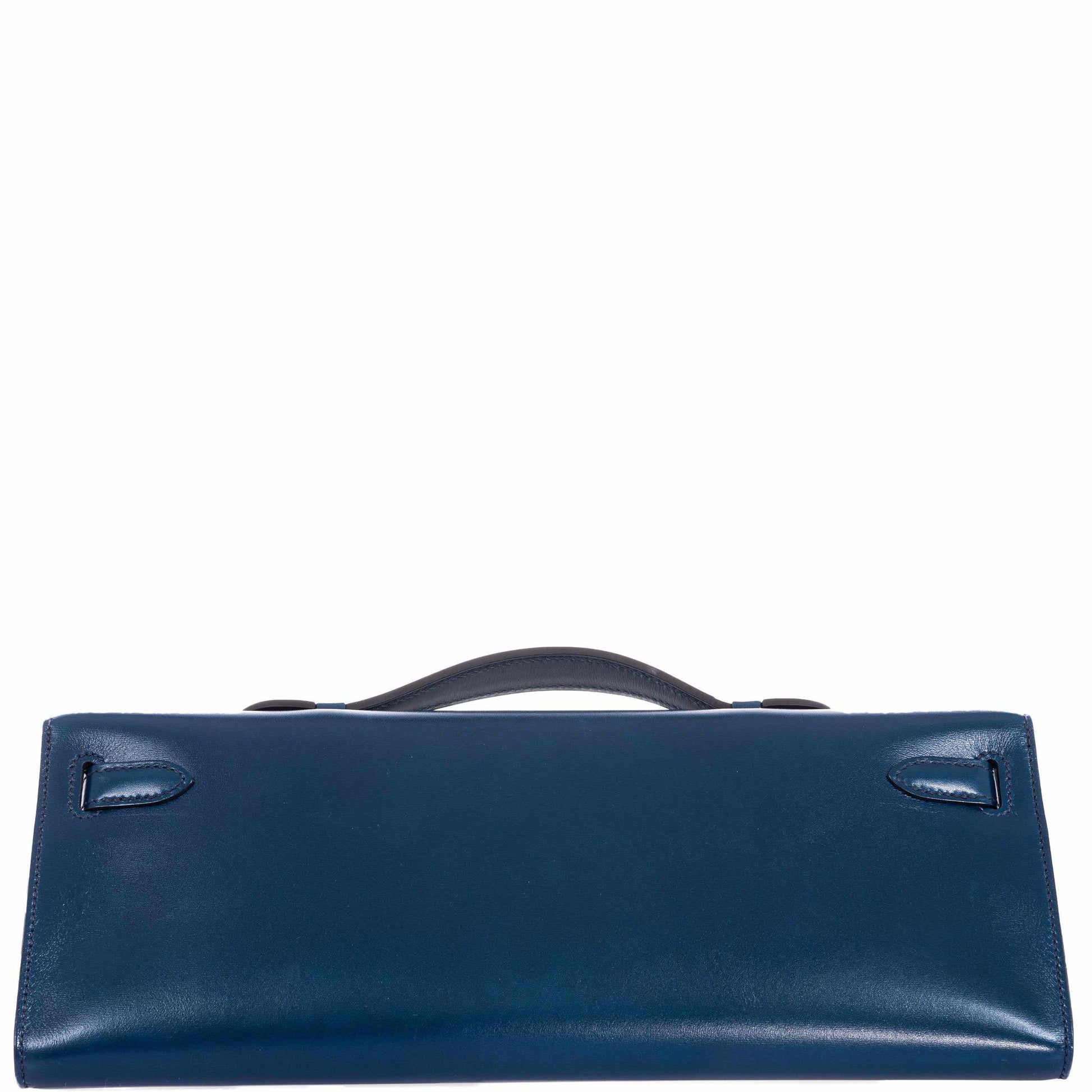 Hermès Kelly Cut Clutch Bleu de Prusse Box Palladium Guilloche Hardware