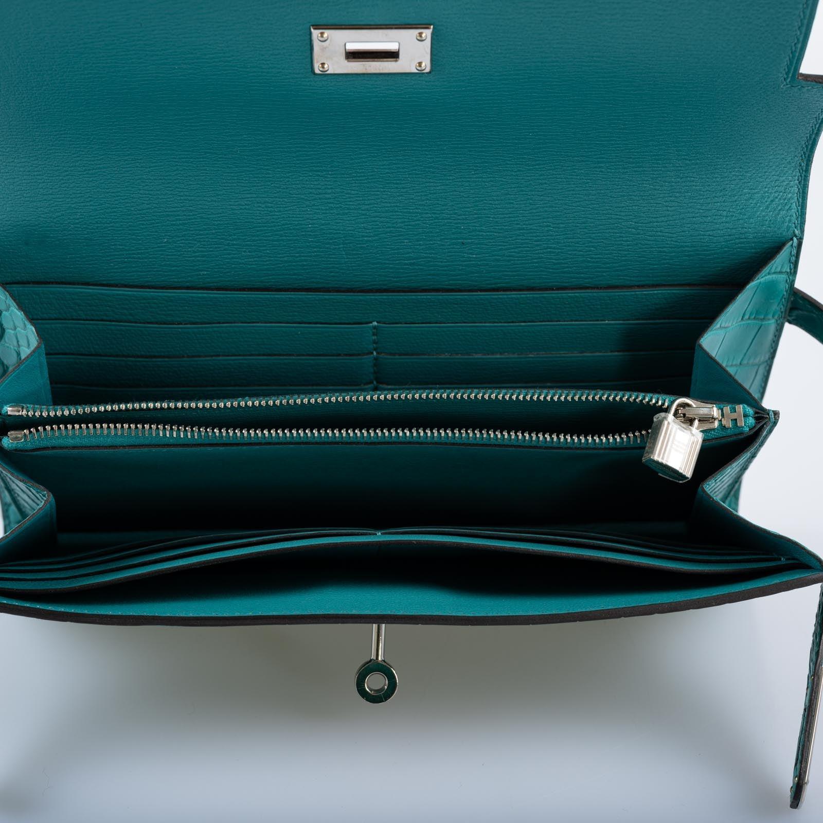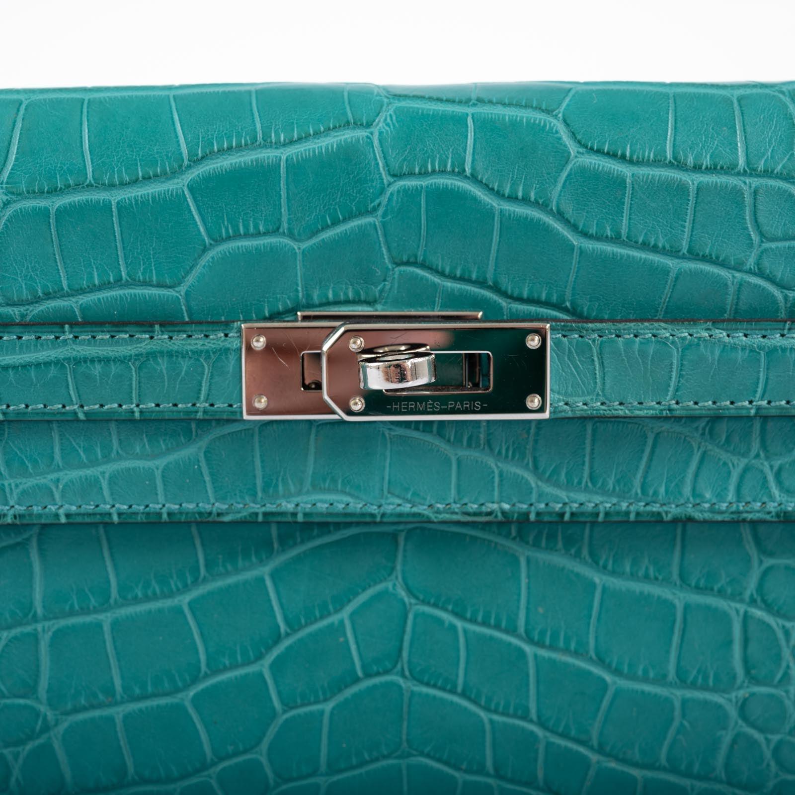 Hermès Kelly Longue Wallet Blue Paon Matte Alligator with Palladium Hardware